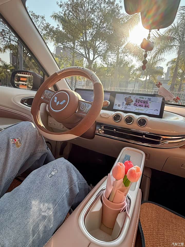 25款缤果一共四个颜色,当时门店里只有紫色的现车,而我比较中意奶酪白和海盐蓝,又考虑到现在奶酪白街上看得比较多,我想与众不同一点,于是乎就选择了海盐蓝,喜欢这种清爽的颜色。车身流畅的线条,配上萌萌的大灯,满足了我对小车车该有样子的全部幻想。当时提车回学校,我的同门们坐我的车,都赞叹特别好看,很多女生同门都很喜欢,甚至有一个同门还没上车,就对着我的车外观和内饰一顿拍,说:“我要发给我的父母看,过两年上班了我也想入手一辆”。