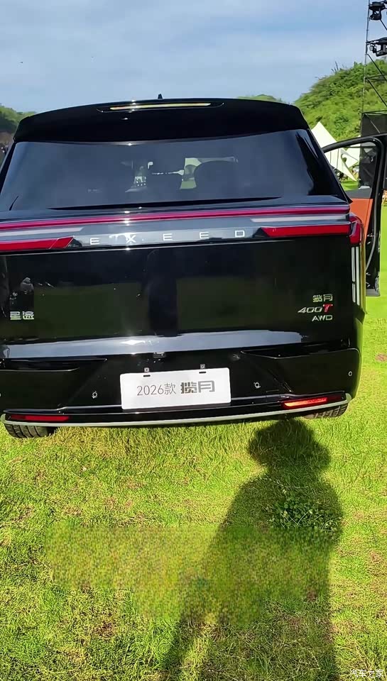 草地上第一眼看到实车,它给人的压迫感比照片上强得多。车长超过5米,高度达到1.8米,站在旁边能真切感受到中大型SUV的体量感。前脸是星途家族标志性的大尺寸横向镀铬格栅,非常大气稳重。不过,我觉得2026款变化最妙的地方在车尾。它换上了全新的竖向布局贯穿式尾灯,内部光带结构复杂,点亮后辨识度极高,一下子就和老款区分开了,显得更精致、也更有科技感。牌照框移到了后保险杠上,让整个车尾看起来更简洁。销售发小特意指给我看新增的“苍穹蓝”车漆,在阳光下确实有渐变的金属质感,很显档次。