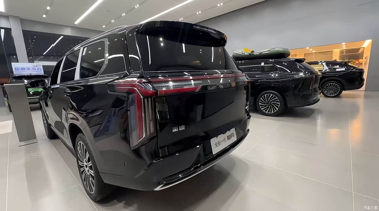 新款揽月外观主要变化集中在车尾,采用了与C-DM车型同款的尾灯设计,夜间点亮时辨识度很高。 前脸还是那个大气磅礴的镀铬格栅,侧面线条依旧流畅修长,但换装了全新造型的20英寸轮毂,我试驾的飞鱼版配的是马牌高性能轮胎。另外比较惊喜的是外后视镜增加了迎宾照地灯,晚上解锁时会把星途LOGO投射在地上,这个细节设计比我那台老款更有豪华感。