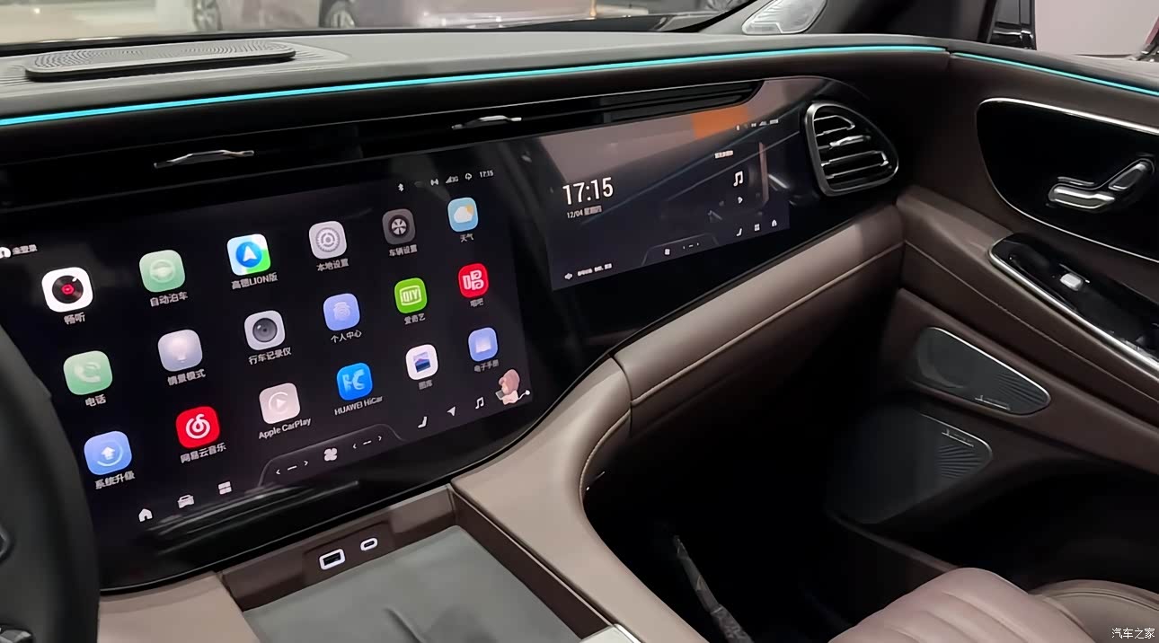 这次试驾的内饰是月影棕,不是爱马仕橙。棕黑搭配的内饰配色,配合黑色针织顶棚,档次感确实比我老款的纯黑内饰更显高级。 材质方面,全车超过91%的软包覆盖,中控和门板触感柔软。座椅升级为“云朵超软皮”,实际乘坐感觉比老款更柔软亲肤。 三联屏布局没变,但车机系统明显更流畅了,语音识别速度和准确率都有提升。一个很实用的改进是:启动按键位置前移了,彻底解决了老款上偶尔会误触的问题。