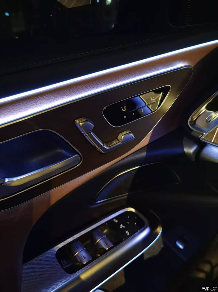 对E300我比较满意内饰,尤其晚上坐进车里,64色氛围灯一亮,配上实木饰板和中控大屏,晚上开车真有那股豪华宫殿的味,我媳妇都说这钱花在氛围上了。