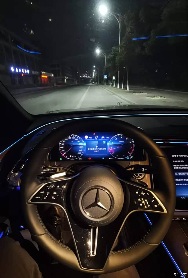内饰是奔驰的强项,豪华感足,尤其是晚上,氛围灯效果拉满。就是新车有点味道,得多通风。