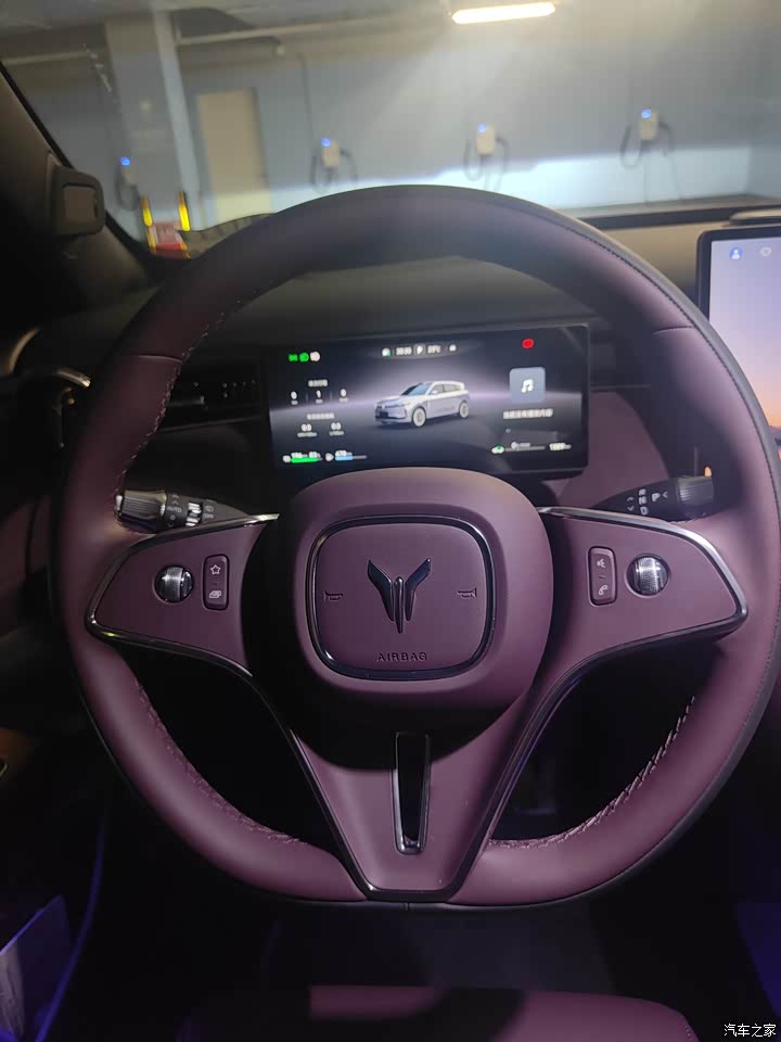 进到车里是极光紫,色调压着灰,长看不腻,中控和门板摸到都是软包和仿麂皮,饰条用仿生木纹把气氛铺开,15.6英寸2K中控屏操作像平板,副驾女王座椅带腿托,一键放倒接近163度,通风加热按摩都在,前排按摩有多种模式可切,通勤路上开一档,肩背放松得快。