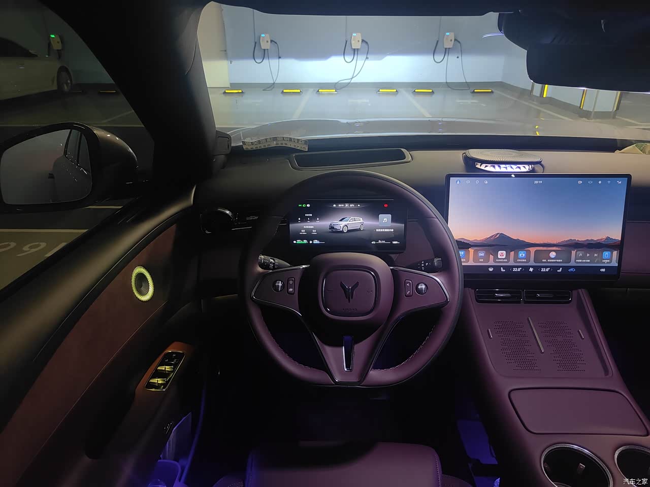 驾驶感受更偏稳,底盘是全铝结构,前双叉臂后多连杆,过减速带和井盖动作干净,车身一次过,不拖泥带水,后驱单电机215kW,起步轻,中段提速跟手,电门响应线性,能量回收拖拽轻,家人坐着不晕,方向盘手感轻准,车身不小但5.75米最小转弯半径在城市掉头好掌握,高速上风噪胎噪会多些,造型和性能取舍能感到。
