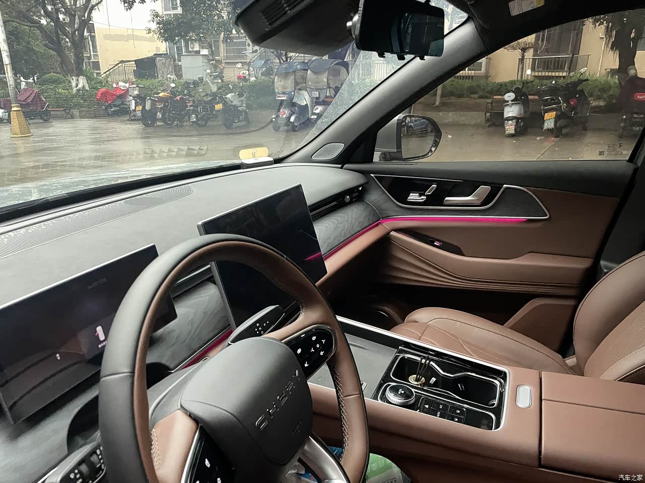 内饰的话最喜欢这个氛围灯,最不喜欢扶手箱和门板下半部分的棕色塑料,可圈可点