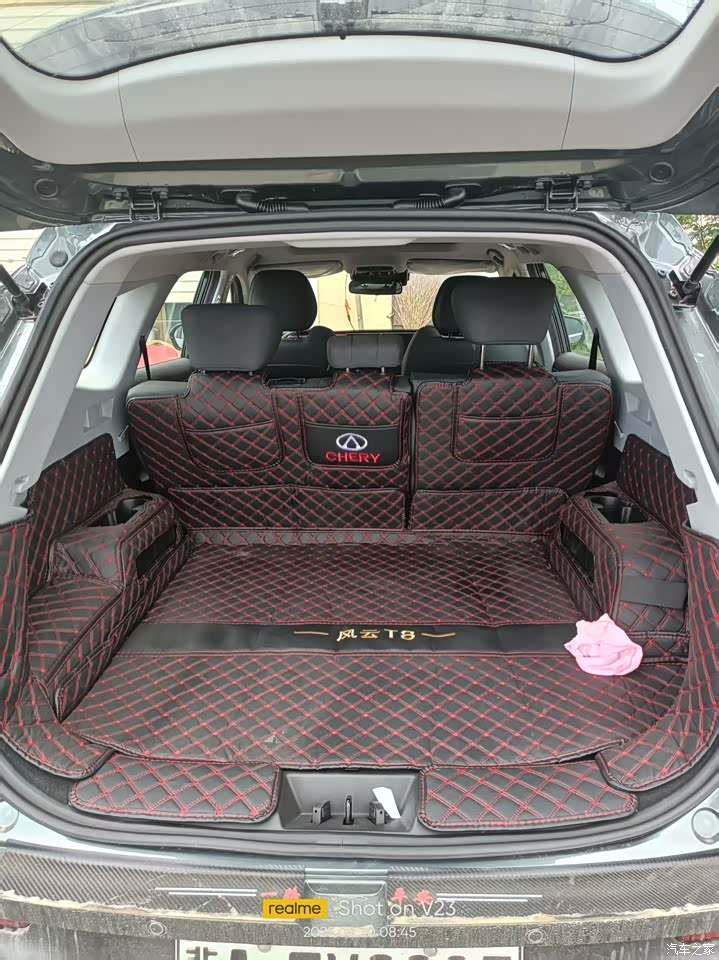 车身整体流线性很不错,颜色我选的青竹灰,也是T8的主打颜色,最主要是耐脏,而且是金属漆,时间长了也不花。最满意的是灯光,贯穿式尾灯设计非常好看,点亮后辨识度超高,夜间行车回头率不错。