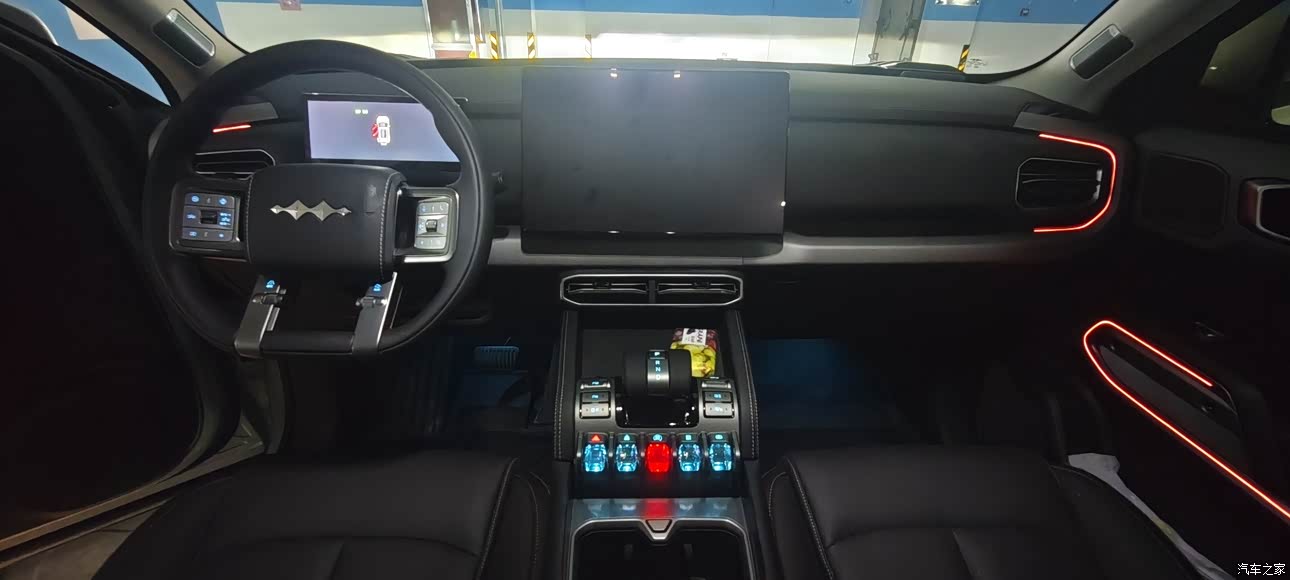 说实话,大家不怕脏的还是买白色!银外白内真的是梦幻神仙配色,但是考虑到耐脏问题,我们还是选了黑色,还可以,也非常有质感。 最漂亮的是驾驶位的机械按键,红蓝搭配,满满科技感一眼就被吸引住了。座椅皮质摸着也很细腻舒服,我们是自己买了官方的头枕和靠背,软软的,很舒服。还有特别喜欢的一点是可开启天窗,微风吹拂,直接感受自然。
