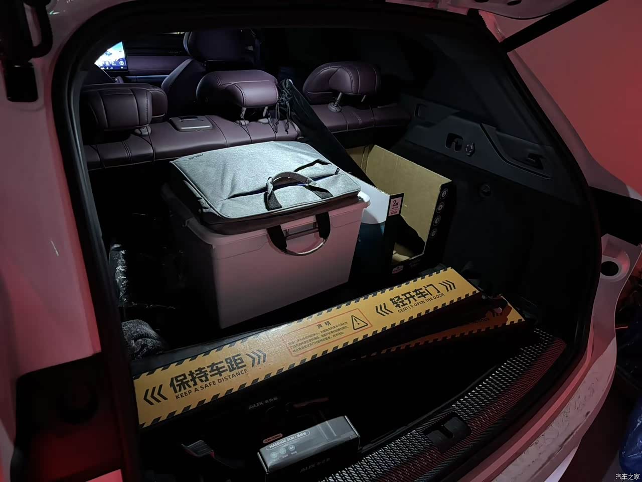 4、空间部分 空间表现比老款提升不少,尤其是储物空间和后备箱实用性特别强。中控台下方的储物空间设计得很贴心,日常放包、杂物都很方便,门板储物格能轻松放下水瓶和雨伞,杯架也能适配各种杯子。后备箱内部特别规整,没有明显的空间侵占,日常放几个行李箱完全没问题,全家出游带婴儿车也能轻松容纳。后排座椅放倒后平整度很高,偶尔需要拉大件物品时,扩展能力特别够用,而且后备箱还配有锚点和电源接口,细节考虑得很周到。