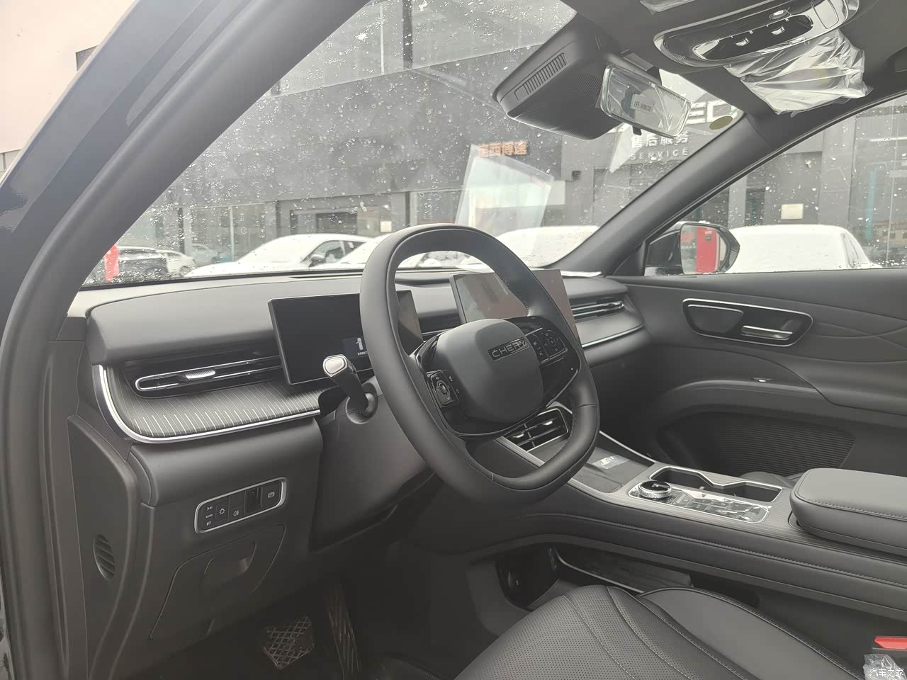 洁白的雪映衬下,第五代瑞虎 8 的外观显得愈发硬朗大气。它那独特的“虎踞式”造型,犹如一头在雪野中蓄势待发的猛兽。宽大的进气格栅搭配犀利的 LED 大灯,仿佛猛兽深邃而锐利的双眼,在雪中散发着摄人的光芒。车身线条流畅且富有力量感,从车头延伸至车尾的腰线,如同猛虎身上的肌肉线条,彰显着无尽的力量与动感。 雪花轻轻落在车身上,为它增添了几分圣洁的气息。18 英寸的铝合金轮毂在雪中闪耀着金属的光泽,与整车的运动风格相得益彰。开在路上,它就像是雪幕下一道独特的风景线,引得路人纷纷侧目。