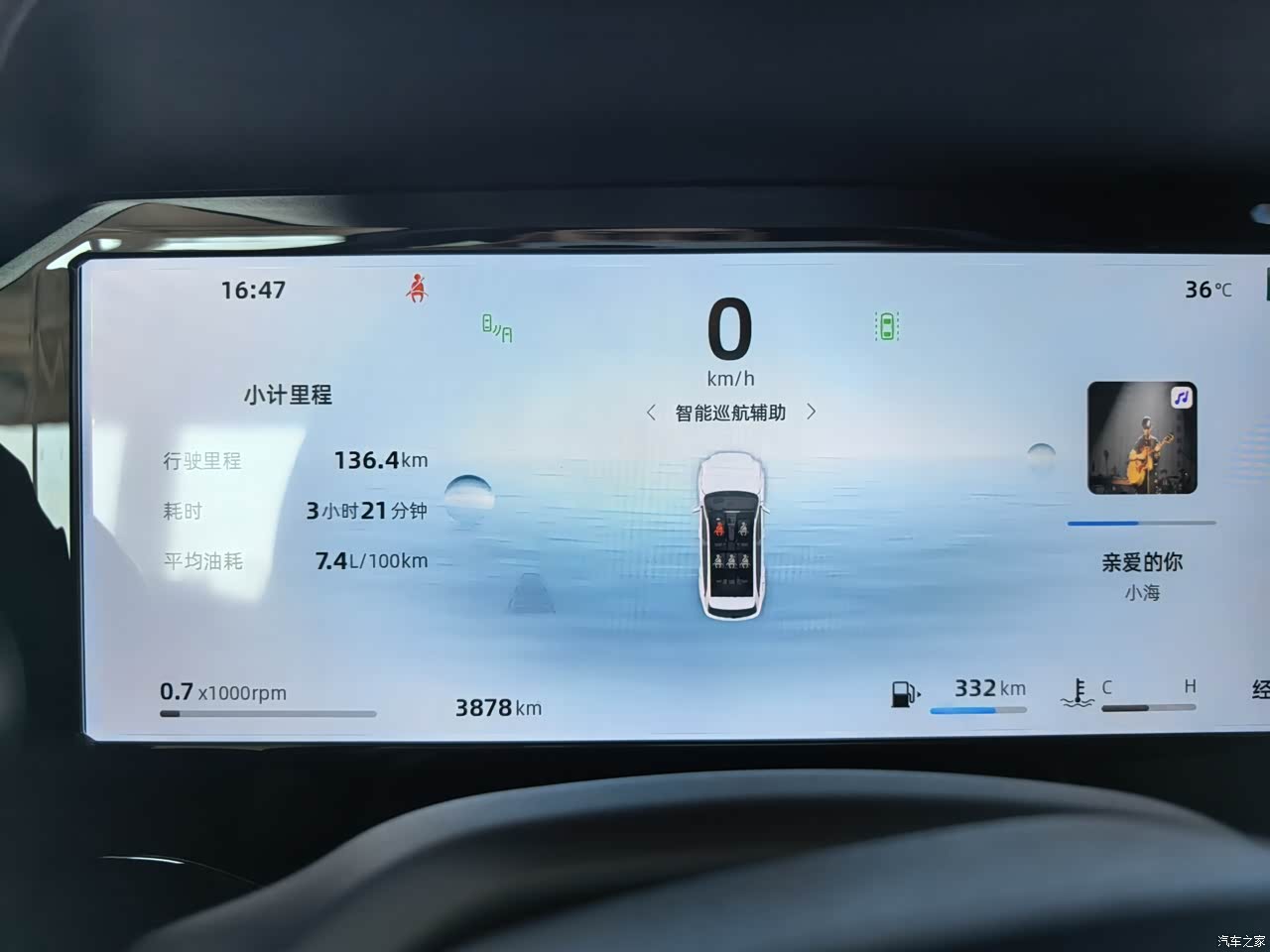 广东车提后,晚上从广东开到广西,八百多公里,开了九个小时(带进服务区),高速一百多很稳重,也很舒适,进入广西界试了下智能驾驶模式,跟车提速和自动减速都不错,变道打转向灯后也会自动变过来,高速智能驾驶模式轻松很多不会这么累,2.0T的动力高速无论是提速和超车给油就起来了;偶尔回村跑山路,过坑洼路段阻尼悬架的减震效果很不错,平时驾驶都喜欢听音乐,燕飞利仕的音响音质也是非常棒的。