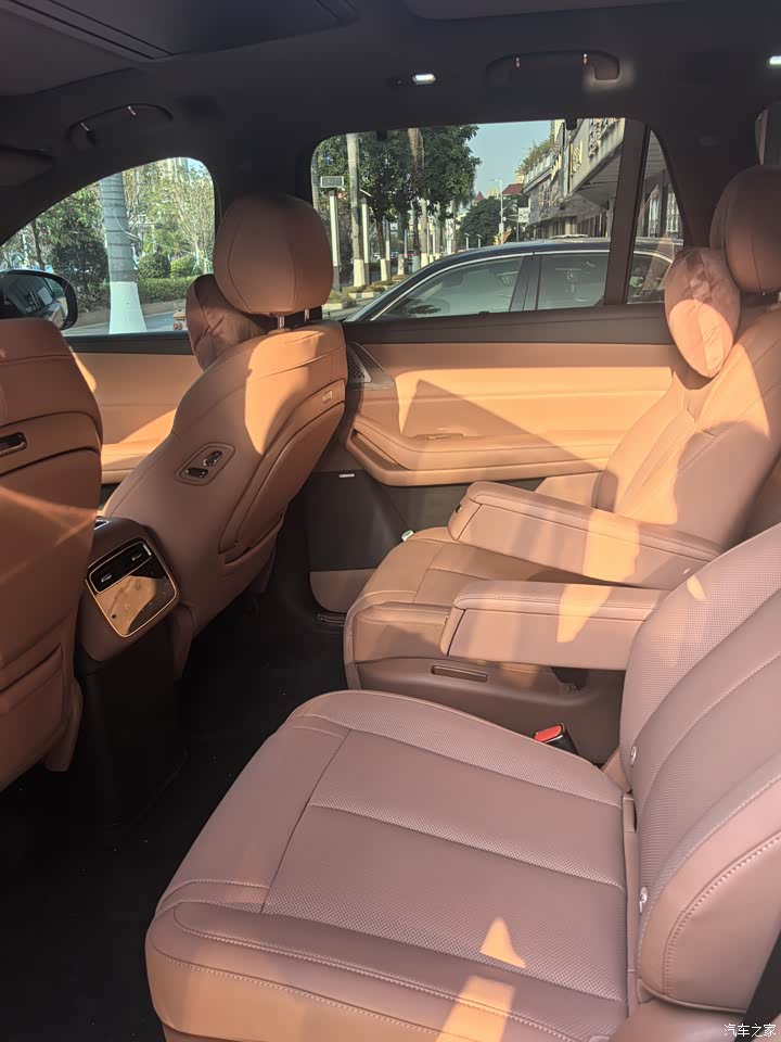 要说槽点,首先是第三排的应急属性,身高175cm以下的乘客短途坐没问题,我哥182cm坐半小时就喊腿伸不开,坐垫偏薄、腿部承托不足,只能当临时备用座。其次是车机逻辑和无线充电,屏幕看着大且流畅,但很多常用功能藏得太深,找空调风向得点好几下,语音控制偶尔会听不懂快语速指令,需要重复说;无线充电板发热严重。最后是黑色外观的通病,虽然气场强,但真的不耐脏,稍微沾点灰就很明显,只有刚洗完车那会是最干净的,内饰整体也是偏老年化一些,不过换个说法,就是有成熟感。