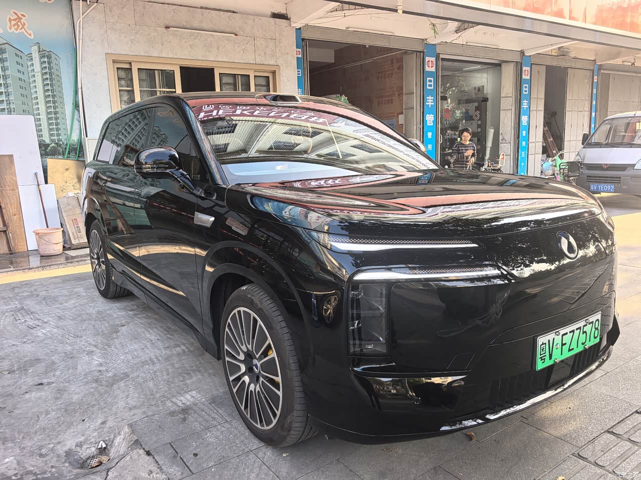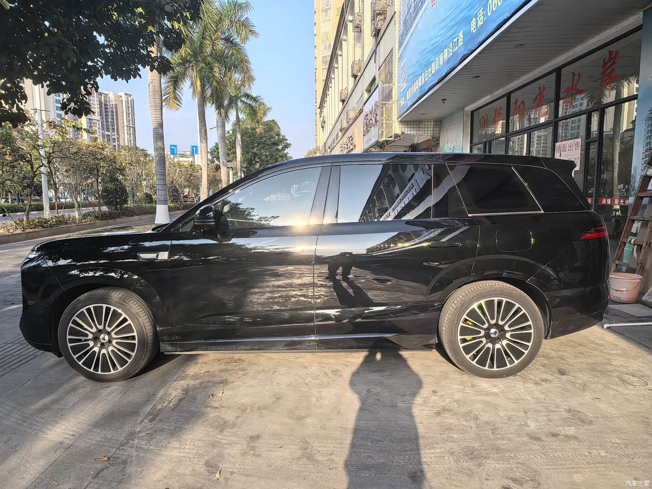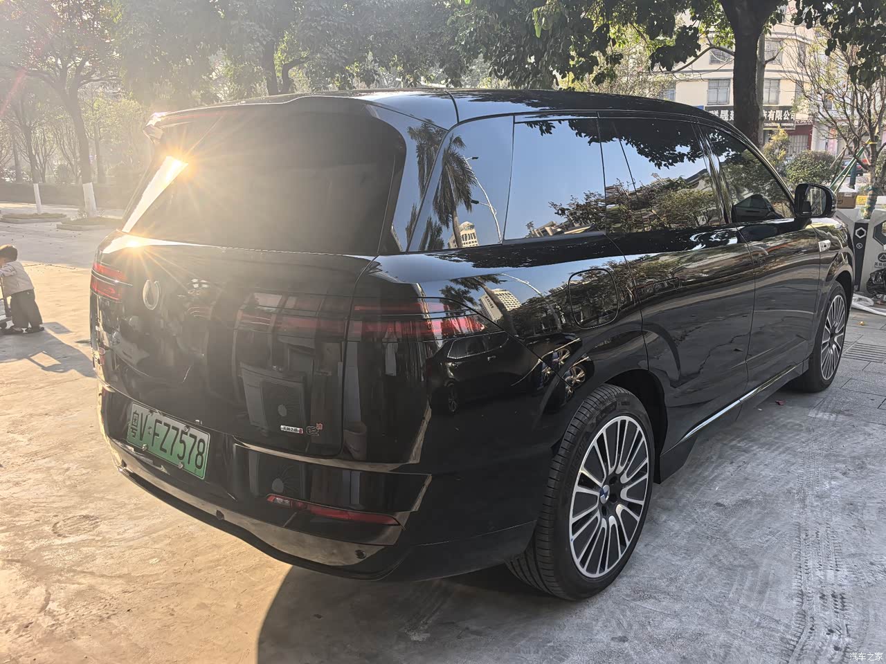 一开始考虑双拼色,后边发现大车还是得黑色酷炫一些,也更大气一点。前脸的繁体字“门”形设计很有辨识度,非常简约大气的设计理念。车身侧面线条流畅,没有大型SUV的臃肿感,黑色车漆在阳光下透着细腻的光泽,搭配大尺寸轮毂,商务家用都能hold住,家人朋友都直夸好看。