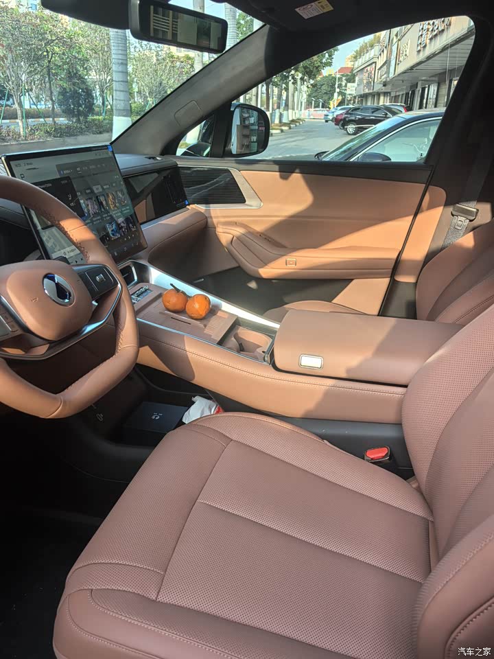内饰选的金山棕,主打一个耐脏,有温馨感,居家氛围很浓。座椅做工扎实,缝线工整,触感柔软,车内软质材料覆盖率高,高级感十足的同时,手感也是在线的。但氛围灯有点普普通通了,灯光偏暗且模式单一,晚上开车缺乏氛围感;另外低速行驶时偶尔会有轻微的低频共振,开久了会习惯,但初期有点影响体验。