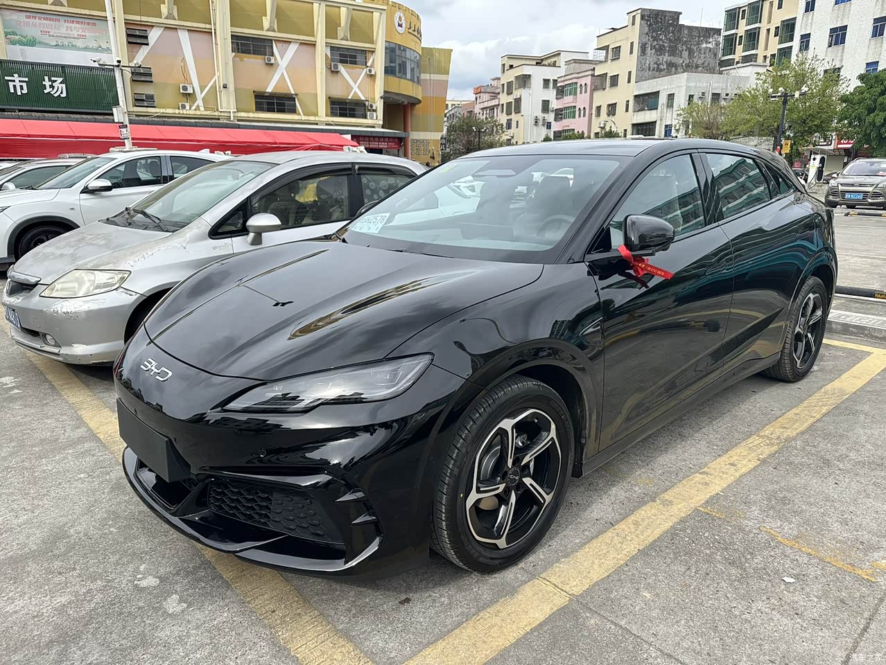提车快一年了,整体用起来还是不错的,外形很帅,当时就是为了帅选的黑色,但是不得不说,黑色是真不耐脏。驾驶感受也挺好,动力随叫随到,转向比较灵活轻巧,就是底盘感觉有点硬,走烂路的话有点偏硬,顶配带fsd的可能会好点,续航什么的中规中矩吧,我505版本实际跑起来350左右,不过我有一半是走高速,智能化这块是比较满意的,该配的功能基本都配齐了。车机什么的也比较灵敏.当时买这个车1是考虑这个车不像别的比亚迪那样像网约车,有一定的个性和辨识度,2是我比较喜欢这种两厢车,比较轻巧,而且4600多的长度空间并不小,后排坐人一点也不挤,3,内饰用料包括门那些质感都不错,当时就一眼相中了,还赶上了智驾版本。