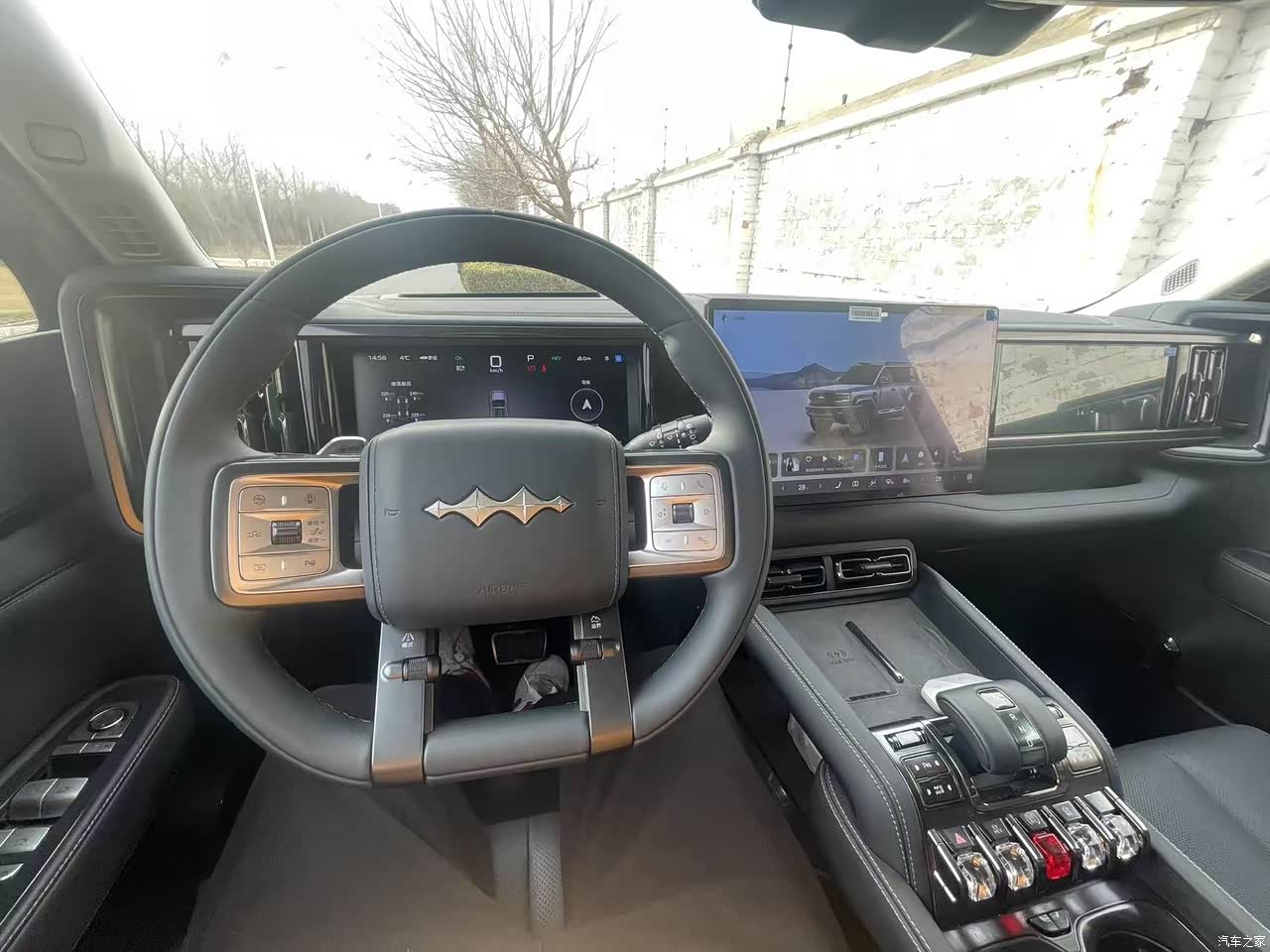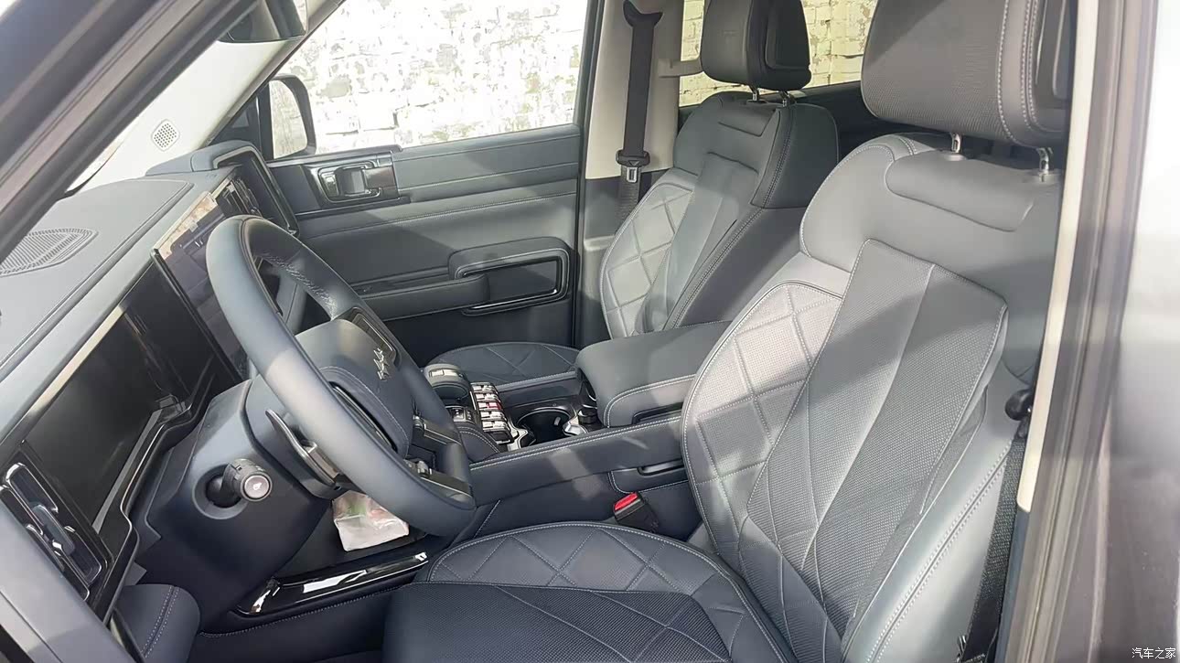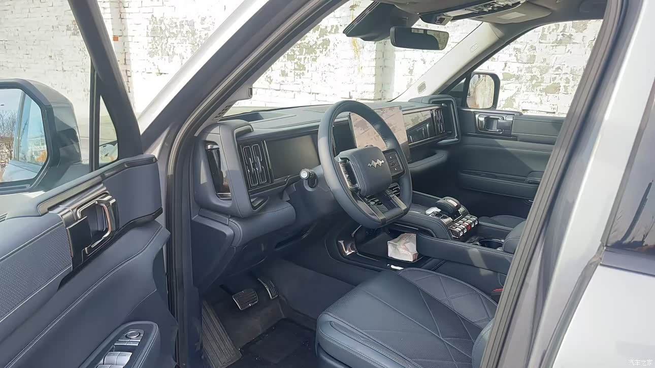 外观上面属于颜值在线,设计非常的壮实,比正常家用SUV要大气不少,怎么看都很有气场,看着很厚重,没有那些车看上去单薄,关门声音也很厚重,用了不错的材料。前面方程豹的品牌标识挺个性化,轮眉微微隆起,搭配轮胎也很厚实,过坑洼路段什么的,心里面有底