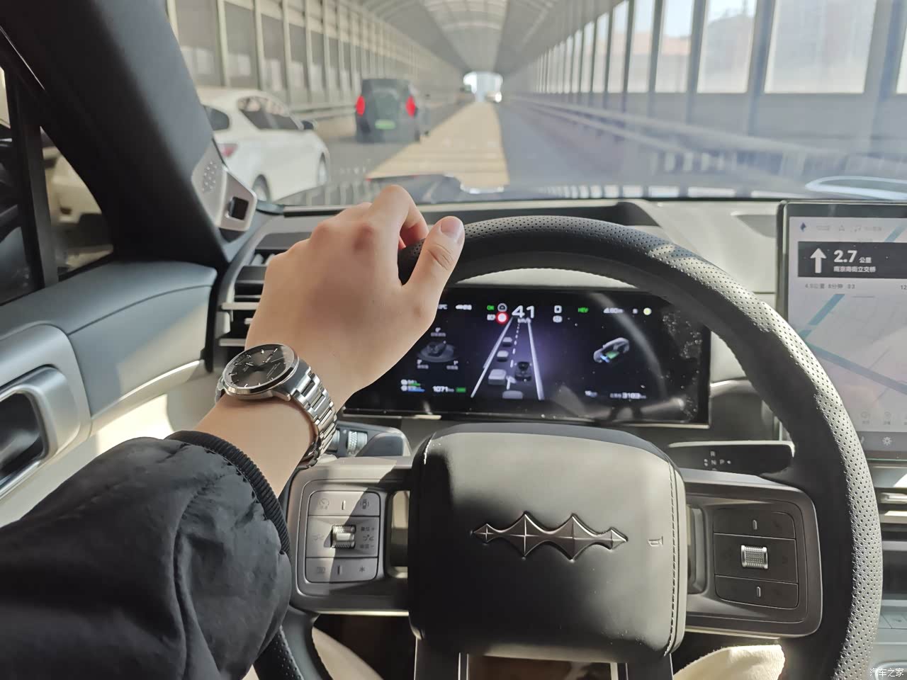 座椅舒适性没话说,承托性好,开长途几小时腰也不酸。我选的灰色内饰,干净的时候挺显质感,但确实不如黑色耐脏,容易沾灰。内饰部分塑料件手感一般,接缝处精致度还有提升空间,水杯架设计偏浅,放 500ml 矿泉水有点碍手。