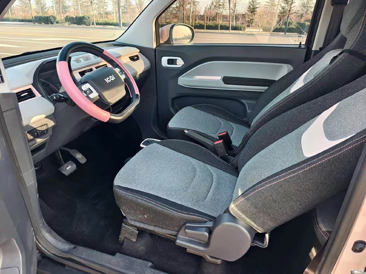 23年的时候想添置一台AO级别的小电车,主要是为了送孩子买菜用,家里的SUV 在城市里开的话太不方便了。那时过去看看奇瑞新出的QQ冰淇淋。我试驾的是QQ冰淇淋圣代170的。车身颜色是粉色的。这个小车整体看起来很有运动感和个性。原价裸车是3.99万元,当时买的库存车3.99。 最满意的 1.动力是绝对可以的,这款车型这么小居然可以开到80到90这是我没想到的。在市区开的嗖嗖的我自己很满足动力这方面。 2.这款小车开车方式跟开大车一样,是直着做的那种,所以开车的时候视野很开阔, 这部车很小,又灵活。