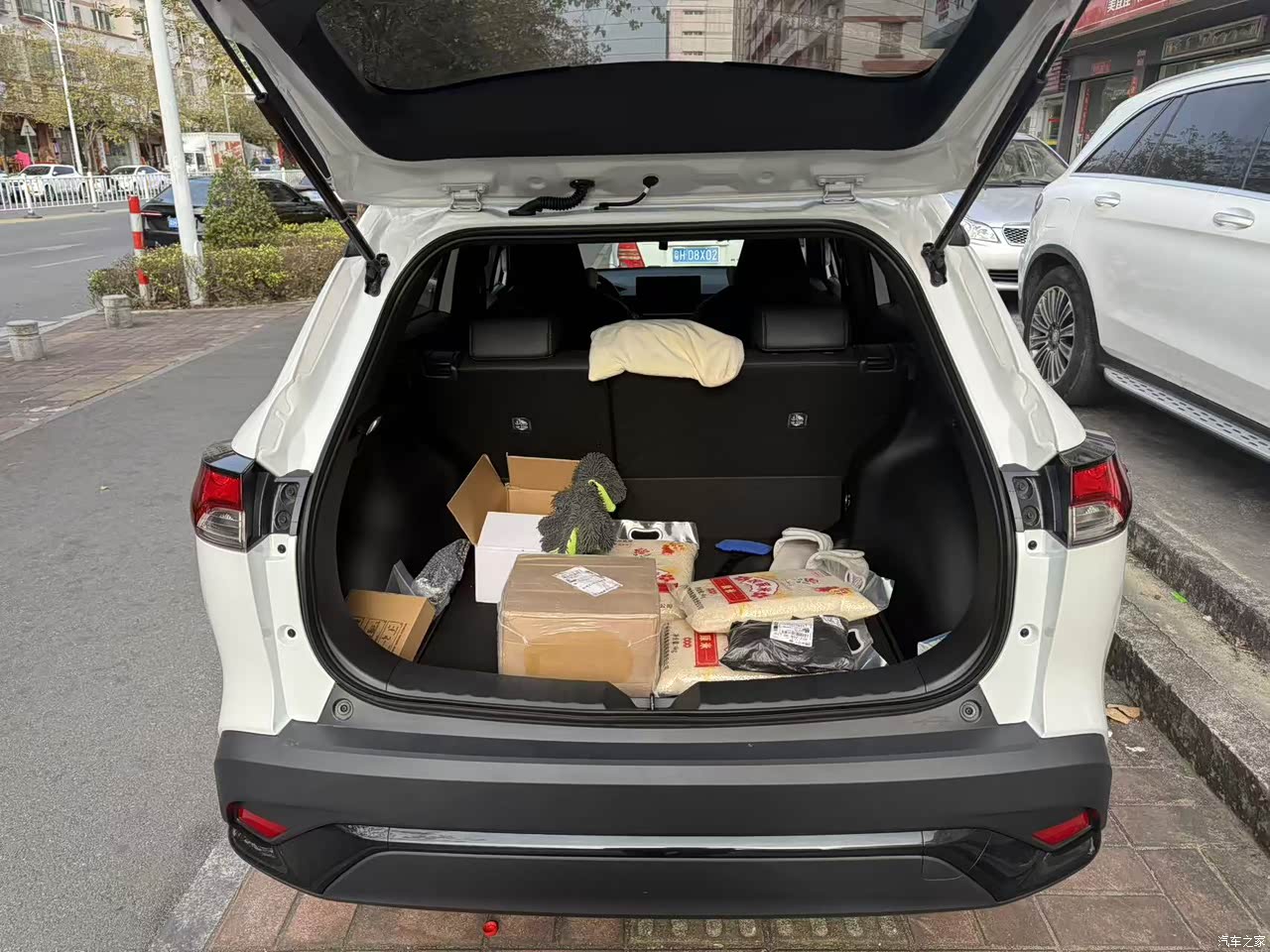 别看车外面不大,空间绝对是惊喜项,家用太够用了! 前排我坐进去,头部腿部余量特别足,开车一点不憋屈。后排坐三个成年人完全不挤,腿部不顶、肩膀不碰,家里老人小孩坐着都舒服。后备箱更实用,买菜、装快递、放行李箱、回老家带特产,怎么塞都够,日常家用、周末短途出行,空间绰绰有余。这种不浪费、够实用的空间,比威兰达荣放还贴合我们小家庭的日常,实用度拉满。