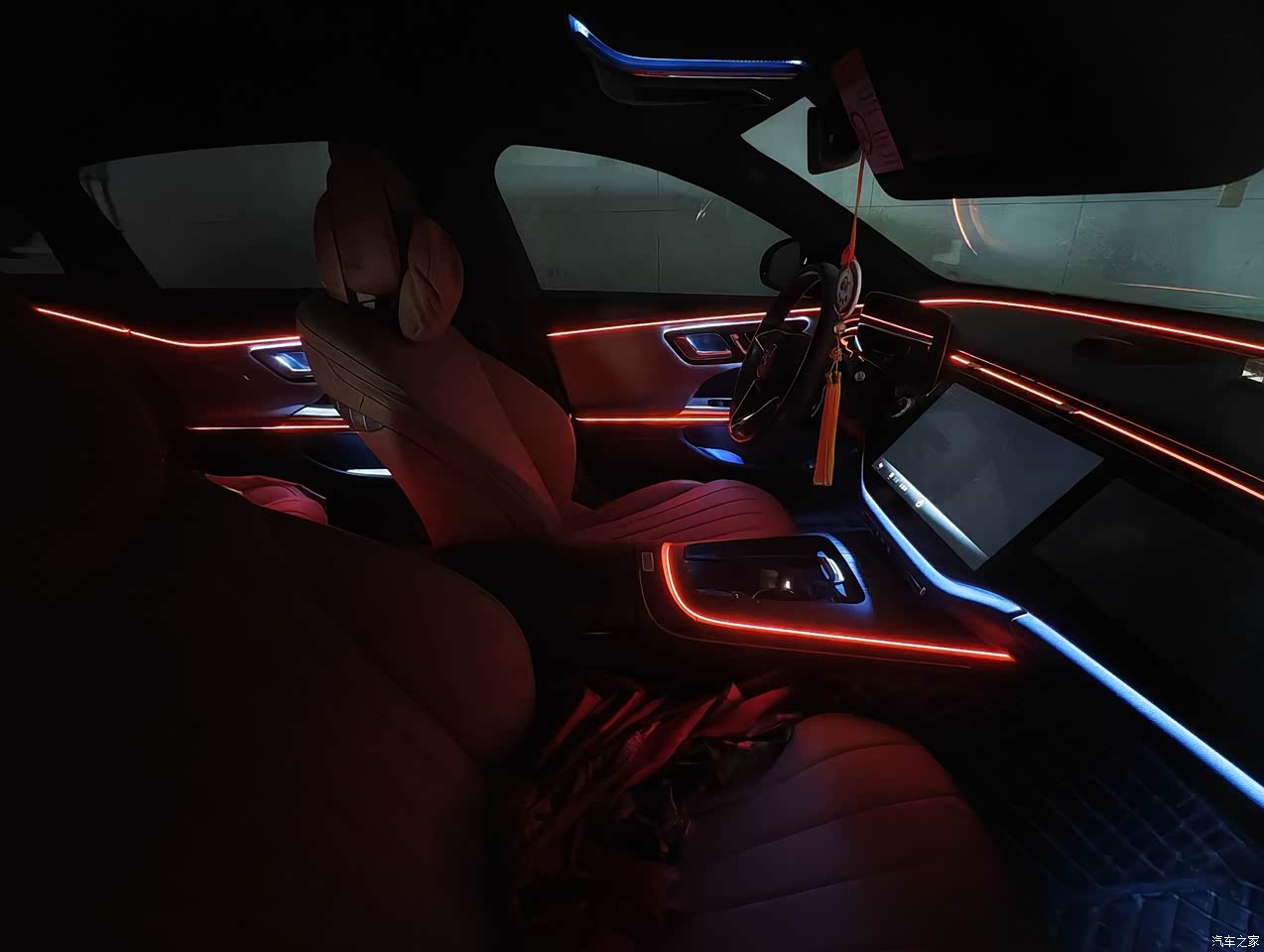 奔驰的内饰那也是毋容置疑,豪华感满满,氛围灯也是玩出花玩出水平了,丰富多彩不刺眼,个人非常喜欢。屏幕做出黑色渐变效果与黑边完美过渡融合,不会让人觉得突兀。