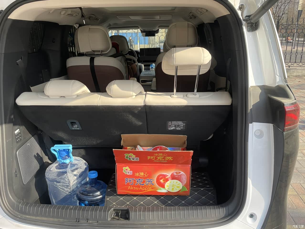 空间绝对是这款车的一大优势,毕竟是MPV,主打就是空间实用性,完全能满足我通勤+短途旅行的需求。车身尺寸不算小,轴距也够长,车内的乘坐空间特别宽敞,前排驾驶位和副驾驶位,我身高178cm,体重150斤,坐进去完全不挤,头部和腿部都有足够的活动空间,长时间开车也不会觉得压抑。第二排是独立座椅,空间更宽敞,平时带家人出行,老人和孩子坐在第二排,能随意调整姿势,腿部空间很充裕,哪怕是长途坐车,也不会觉得累,而且第二排的座椅包裹性很好,坐起来很舒服。第三排空间也不算小,不像有些MPV,第三排只能坐小孩,这款车第三排坐两个成年人完全没问题,头部和腿部空间不会太局促,短途乘坐完全够用,周末带爸妈和孩子一起出行,三排座椅坐满也不挤。储物空间也很丰富,门板上、中控台上、扶手箱里,都有储物格,平时放手机、钥匙、水杯都很方便,后备箱空间也够用,平时通勤放一个背包,短途旅行放几个行李箱、小孩的玩具、野餐垫,完全没问题,要是把第三排座椅放倒,后备箱空间会更大,实用性拉满。