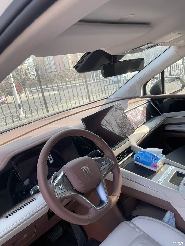 内饰的整体质感很不错,完全对得起这个价位。车内大面积采用软质材料包裹,摸起来很细腻,不会有那种廉价的塑料感,中控台的布局很简洁,不会显得杂乱,操作起来也很方便。中控屏是悬浮式的,尺寸很大,清晰度很高,操作起来很流畅,没有卡顿的情况,而且支持旋转,平时看导航、看视频都很方便。仪表盘是全液晶的,显示的信息很丰富,车速、油耗、续航、电量都能清晰看到,一目了然。座椅的材质很舒服,是皮质的,透气性很好,夏天坐不会觉得闷,冬天坐也不会太凉,而且座椅的支撑性和包裹性都不错,长时间开车也不会觉得累。空调是三温区独立控制的,前排和后排可以分别调节温度,照顾到每个人的需求,而且空调制冷、制热都很快,效果很好,车内的隔音效果也不错,平时开车的时候,外界的噪音过滤得很到位,高速开的时候,稍微有点风噪,但不影响,放一点音乐就能盖住