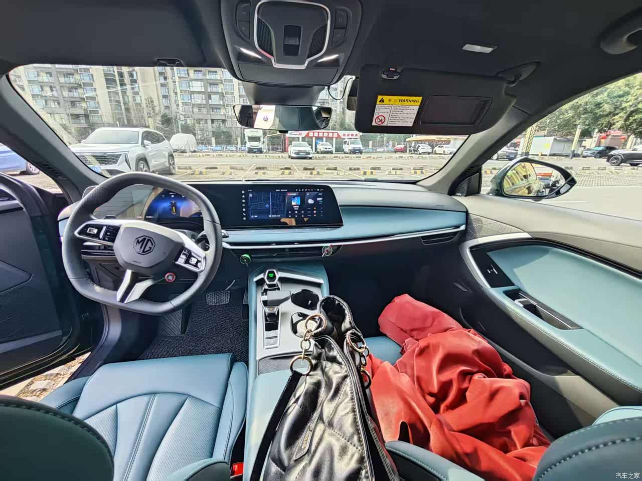 188马力,1.5t,动力猛,19英寸轮胎,基本省下了该装的钱,就换轮毂就好了,带主动刹车,车道偏离,偶尔跑高速还是有用,全景影像也很清晰,我记得以前他们说名爵影像不清楚,估计升级了,全景天窗还是安逸,感觉空间都变大了,车机的屏幕够大了,很气派