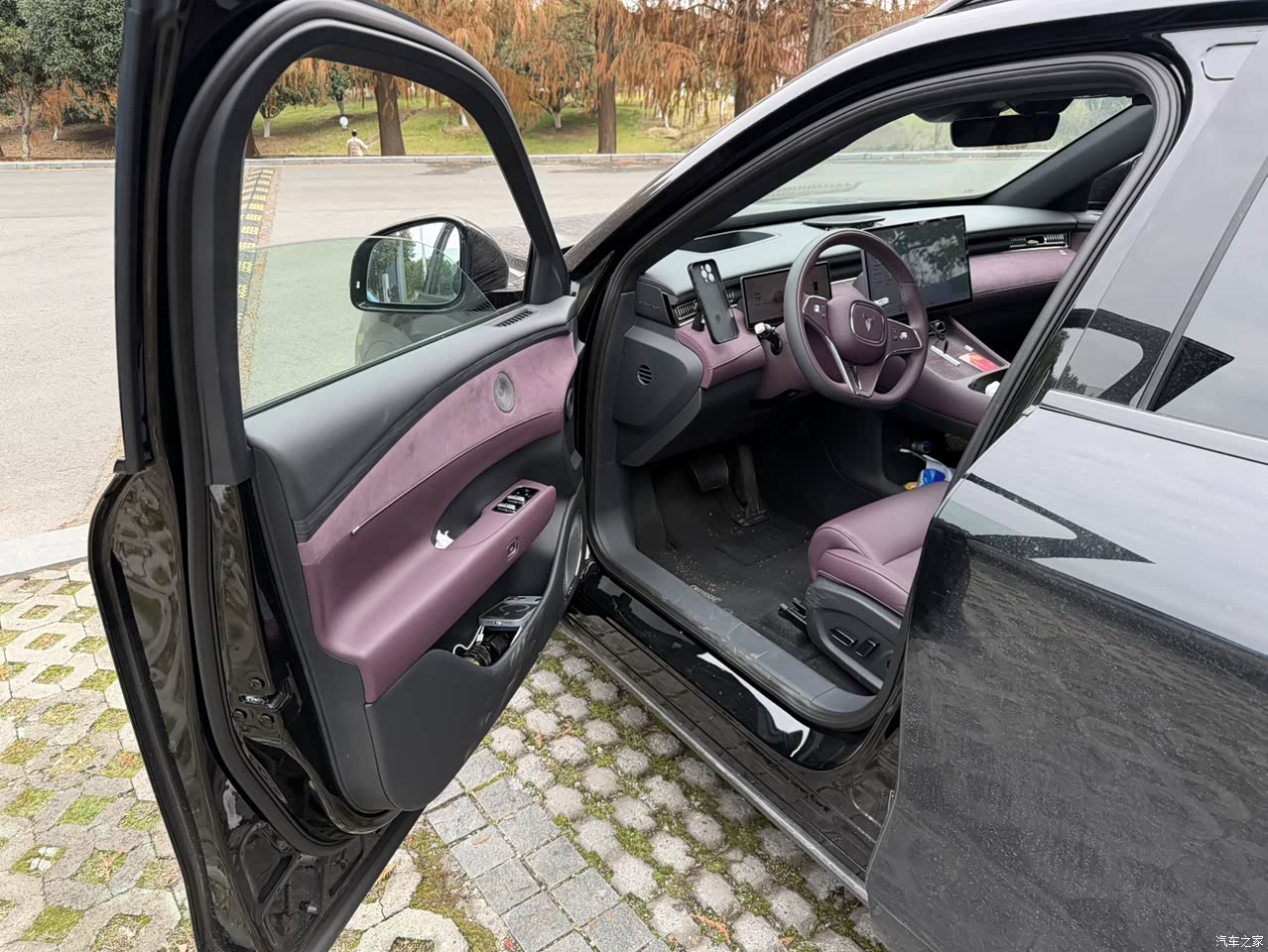 内饰选了极光紫,发布图看担心过艳,落地看实车质感提上来,能摸到的地方多是仿麂皮软包,手背刷一下是细腻的,车里味道控制得轻,我最常用在副驾那套配置,腿托通风加热按摩都在,放倒到163度接近平躺,家里人上车就半躺刷视频看剧,一路安静,鸿蒙座舱5.0的流畅度像在用平板,滑动响应跟手,菜单分层有点深,新手刚接触要花些时间把常用入口顶到前面。