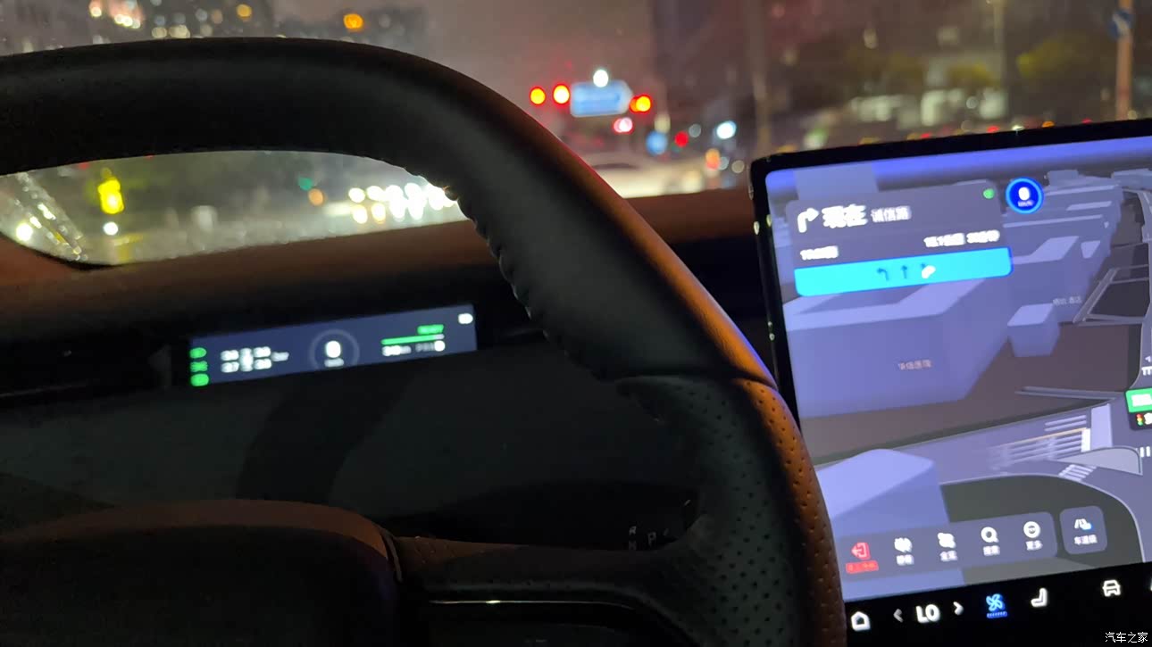 驾驶感受是上手就明白的那种直给,双电机四驱零百4.9秒,等红绿灯抬脚就走,动力线性,提速干净,底盘是全铝的设定,弯里托住车身,前方突然飞来个塑料箱我打了一把方向绕开,车身动作收得住,尾部没有乱晃,手心出汗心里还算稳妥,岚擎模式能模拟V8的声场,换挡时给点顿挫的节律,偶尔想找点驾驶节奏就开,刹车刚接触脚感偏软,多跑几天就找到了力度。