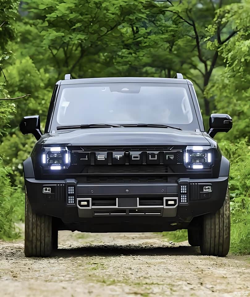 发光标识: 前脸最吸睛的当属镶嵌在大尺寸格栅中央的自发光“JETOUR”标识,昼夜行驶都极具辨识度,科技感十足。 凌厉灯组: 分体式矩阵LED大灯造型犀利,搭配竖向日间行车灯,如同机甲战士的双眼,照明效果出色。 硬派包围: 宽厚的下护板和黑色越野包围,强化了车辆的野性基因和防护感。