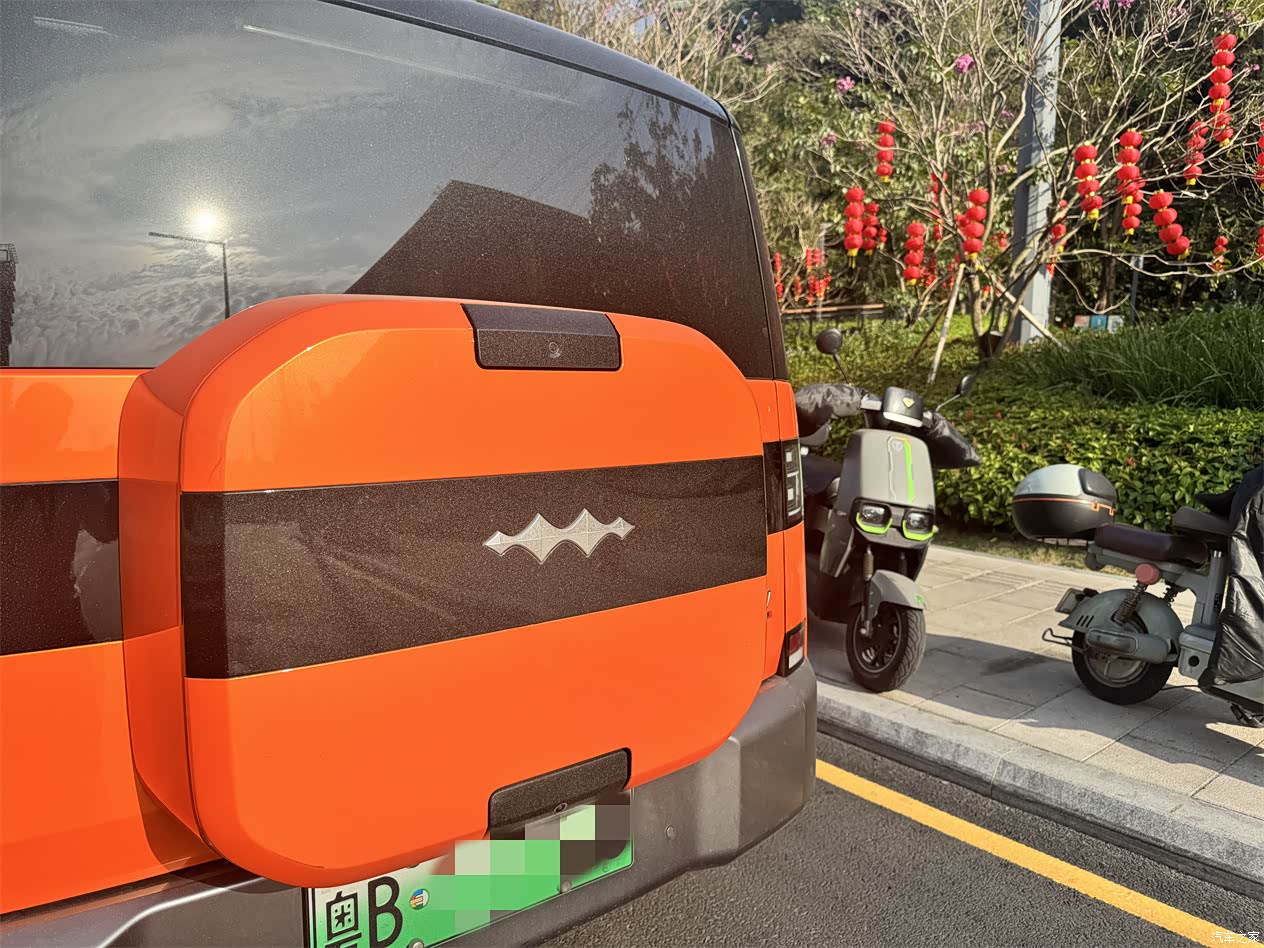 外观是沉稳大气的方盒子造型,不浮夸但很有辨识度,外挂备胎拉满越野氛围感,原厂侧踏板很实用,老人孩子上下车不用费劲跨步。
