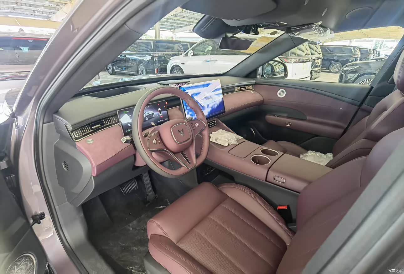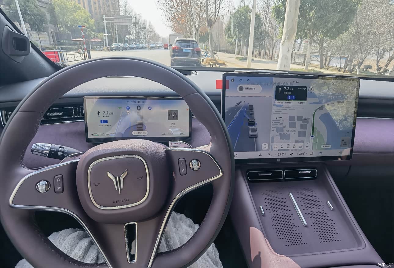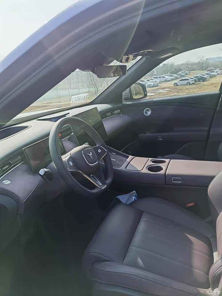 内饰我选极光紫,和外观形成一个互相呼应,坐进来手能摸到的地方都是软的,不是硬塑料那种触感,他们说皮质有母婴级认证,车里气味轻,我家有孩子心里更稳,座椅舒适度符合期待,软硬适中,包裹也到位,晚上氛围灯开起来很好看,颜色能换很多,我闺女喜欢紫色,说像城堡那种感觉,中控大屏看着显眼,指纹容易留,阳光直晒时有反光,眼睛需要适应一下。