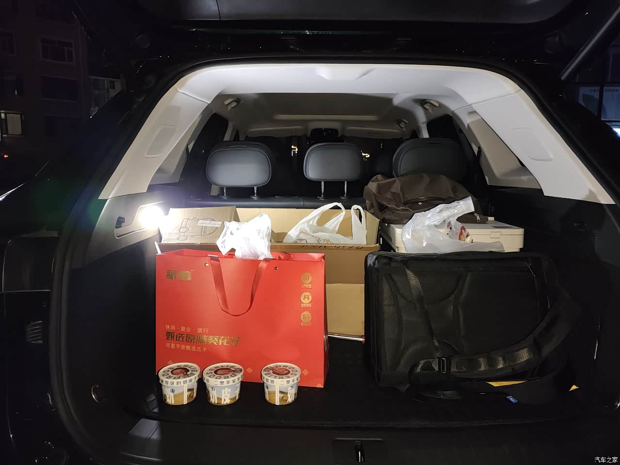空间方面整体来看是很不错的,身高一米八在前排驾驶和后排乘坐时都是比较舒适的,没有拥挤感,但是如果安装了安全座椅,后排乘坐两个成年人的时候,左右会有些挤。储物空间非常充足,前排的储物箱可以放置不少东西,虽然没有无线充电,但是有手机放置架,可以放置手机,也很不错。后备箱容积非常非常大,可以放很多东西,置办年货的时候完全没有空间焦虑。后续露营的话可以将后排座椅放倒,放个大大的气垫床,很不错。