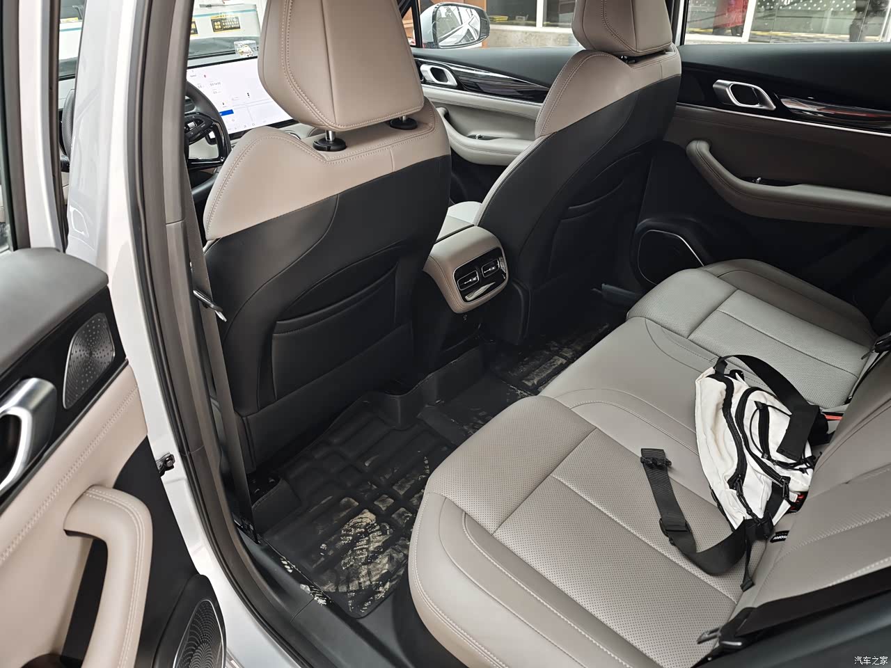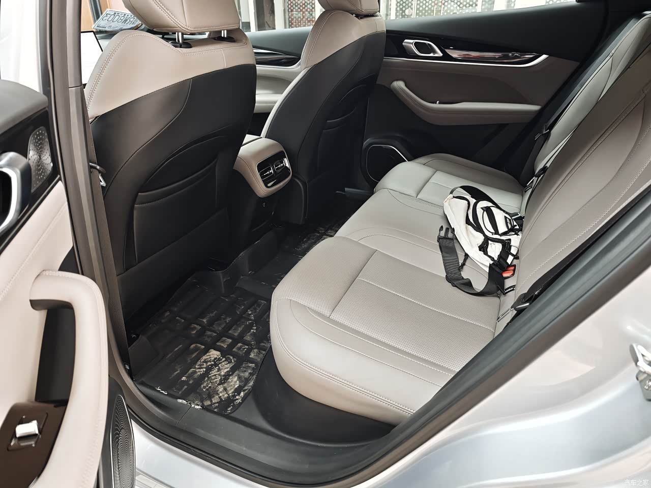 内饰 买完车有点后悔选的灰内饰了,当时买的这个配置好像没有那个琥珀色的内饰就被迫选了这个,不是太耐心,新车离的远点看就觉得座椅脏兮兮的,就皮质座椅材质还说的过去,挺软的透气孔空的那种,也不闷热,新车也没有啥味道。