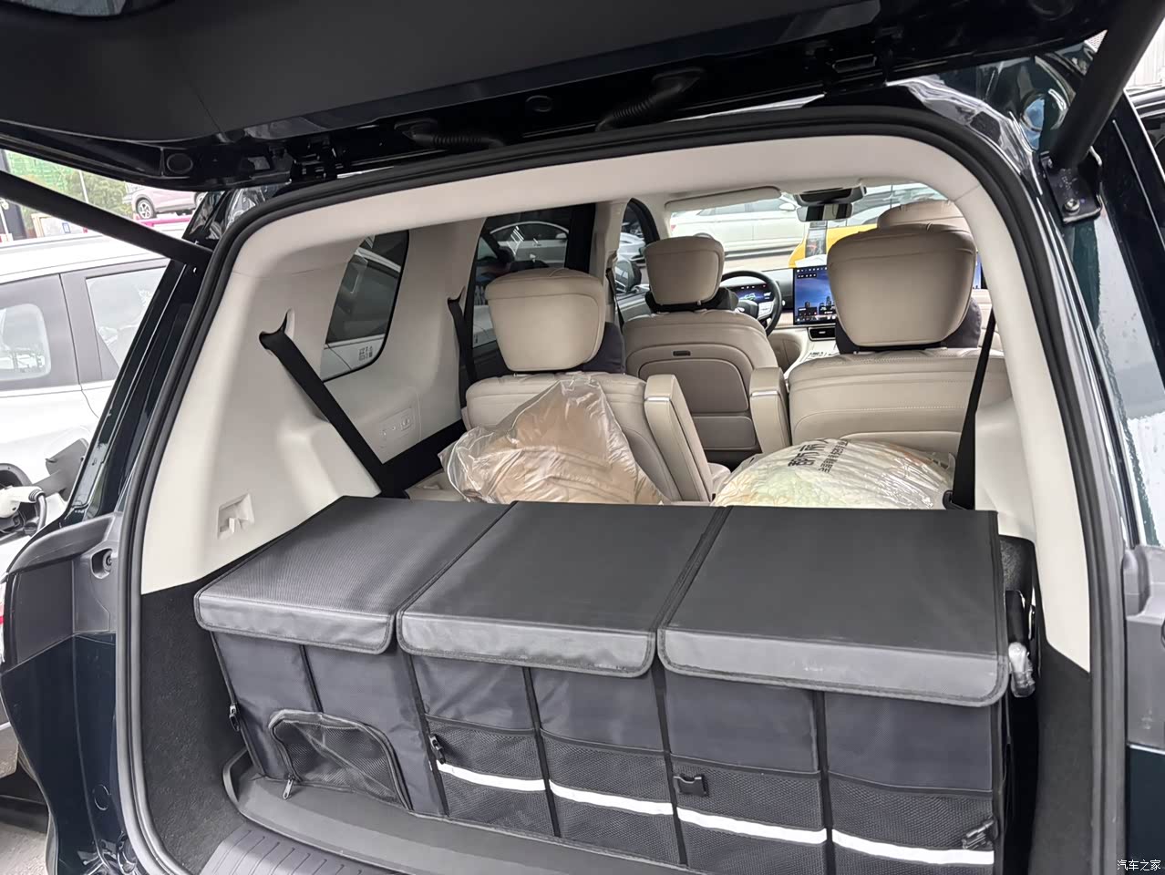 外观大气,气场还是很足的,选的极光绿,晚上在市里的霓虹灯下特别有质感,准备后期贴一个银色的双拼,内饰挑的米色内饰,我知道不耐脏但是架不住确实好看,大不了自己爱干净一点,哈哈… 配置对于我来说这个之前开手动挡的人来说完全够用了,现在做啥都用语音操控,也没有遇到过车里卡顿这种情况,这两天在研究自定义屏幕壁纸的事情,车机自带的那几张壁纸已经不能满足我了,重庆这几天早晚温差大,早上我出门比较早,一般都会用手机提前打开座椅加热和方向盘加热,上车摸起来不会那么刺激,特别说一下这个360环影像素确实很清楚细节也能看清,影响效果特别出乎我的意料,听歌倒还好因为耳朵已经被耳机养刁了,但是车里看电影就完全不一样了,效果特别震撼,环绕声和立体声都非常不错,目前跑了接近400公里,电耗一般在18到19左右浮动,提车的时候加了200块的油一直没有用到过,动力来说完全有底气,日常出行脚只需要放在踏板上稍微用力就完全足够了,因为买的顶配所以偶尔会用到智驾,我也知道开车分心不好但是确实在比较棘手的状态如突然需要处理工作的时候我也可以分心去稍微处理一下,顺便提一句智驾自己开车的技术是优于我媳妇的开车技术的,空间来说的够用,因为我平时也就自己一个人上下班,偶尔带家里人出去,目前第三排都是放倒,当一个4坐车来开,只有一次坐满了6个人,问了一下三排的朋友,也没有像网上说的那种不能坐人,总体来说这个价位段我已经非常满意了,希望给到大家帮助