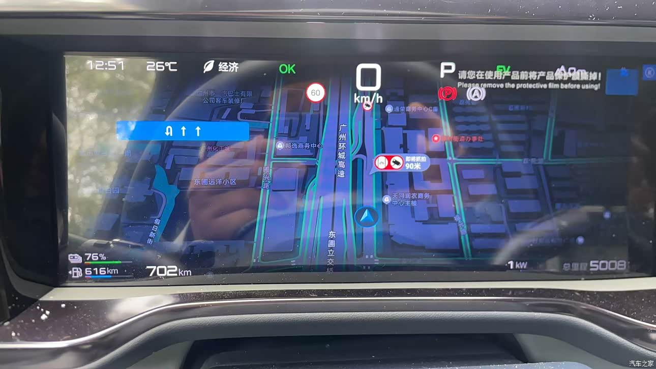 先上大家最关心的表显数据: 纯电续航表显:76%电量时,表显纯电续航616km 综合续航表显:满油满电时,表显综合续航702km