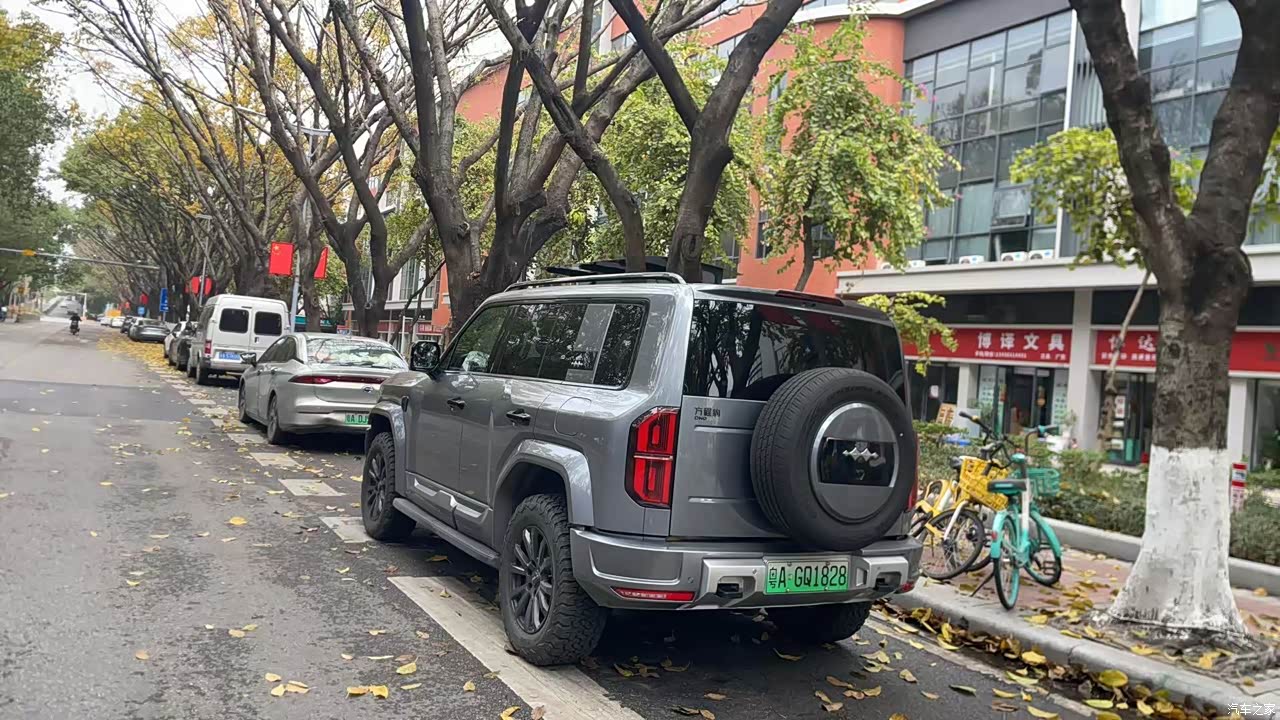 方盒子造型+硬朗线条,没有多余的曲线,从车头到车尾都是“直角线条”,一眼就能看出是硬派SUV,不是那种“伪硬派”的城市SUV。 车头的封闭式格栅+分体式大灯,既有新能源的科技感,又不失硬派的厚重感,LED日行灯点亮后辨识度极高,晚上开车对面车老远就能认出我。 车身侧面的轮眉突出,搭配20寸越野胎,视觉上很有力量感,停在路边,哪怕旁边是BBA,气场也一点不弱。