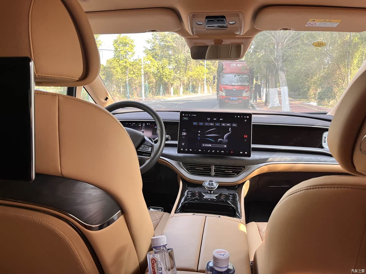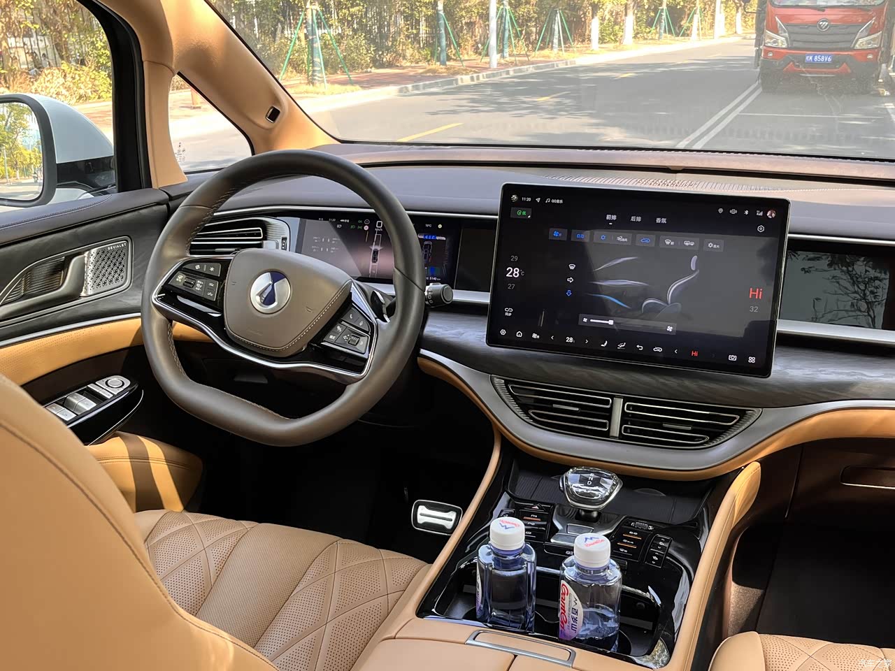 内饰用料非常的豪华,车内大部分都是采用软包,看上去上档次摸着也舒适,整体给我的感觉很高级,符合这个价格的用料。中控大屏是悬浮的,操作起来非常的流畅,没有一点点的卡顿。
