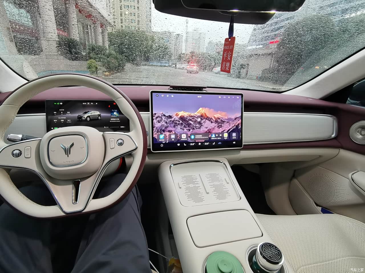 我选的旭日红,提车前家里人说艳,坐进来一看都点头,这个红不冲,偏酒红带点棕,像做工好的皮具那个色,和外观的灰放一起反差出来了,坐舱一下就有味道,官方说软包面积16.4平米我没去算,手摸到的地方基本都软,中控台和门板这些位置用料厚实,缝线均匀,座椅是12层云感零压,坐着腰和大腿都能托住,行驶久了也不累,味道控制得干净,标称母婴级环保材料,家里闺女有过敏性鼻炎,坐别人的新车打喷嚏的问题在这台上没出现,浅色区域勤快点擦就行,皮面好打理,湿巾一抹就净。