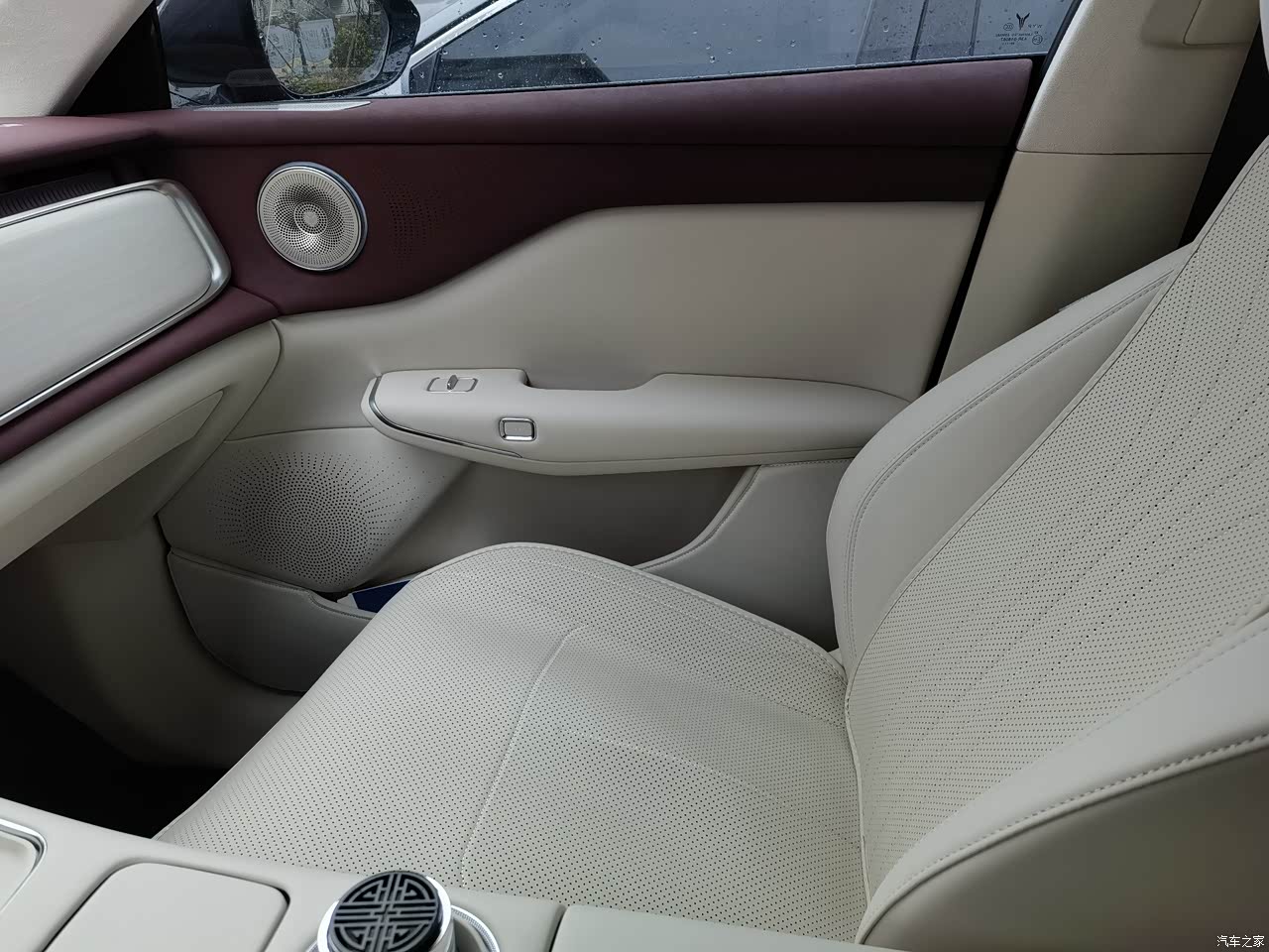 不满意放一块说,无边框车门的噪音和前排储物这俩点,关门那一下确实好看,玻璃先降一点再升回去,乘客一坐上来就夸有仪式感,代价是风噪,高速一上到100码往上,A柱附近“呼呼”那股风吹耳边的声音就起了,市区六七十码没事,双层玻璃压住了,高速上月跑了两百多公里的小长途,音乐音量比平时调高好几格才盖住,到地方耳朵有点嗡,网上有人早说过无边框车门会这样,当时没在意,现在对上了,另外就是前排储物,副驾为了那个零重力座椅把手套箱让出去了,只留个扁扁的小抽屉,放文件夹都不顺手,中央扶手箱被冰箱吃掉一大半,门板储物格也就够放点小东西,手机钱包钥匙这些经常没合适的位置,副驾坐人更挤,只能往杯架里一塞或者塞门板。