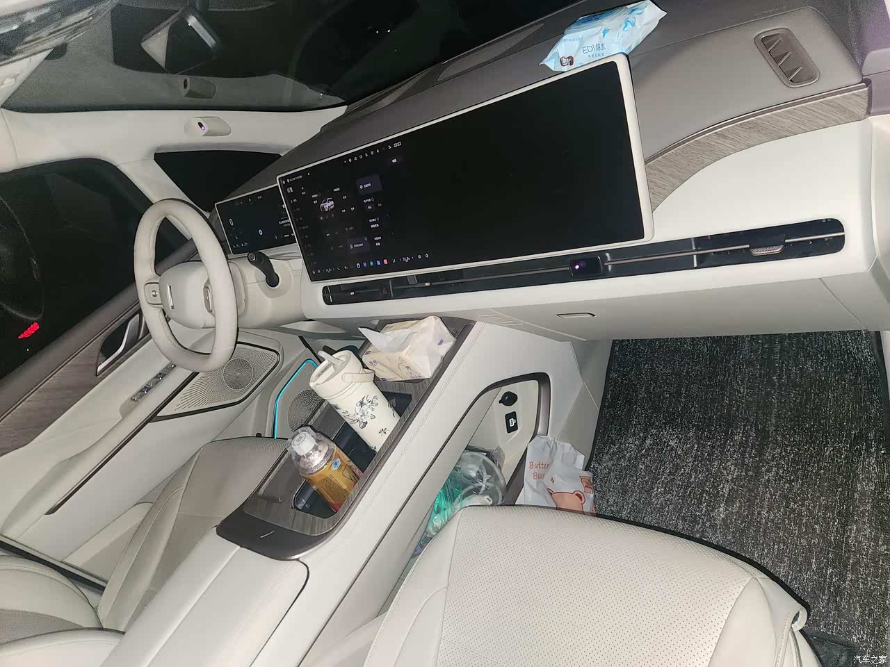 真皮座椅,通风散热一应俱全,座椅坐着挺宽松,日常开着不难受。储物地方也够用,家用挺实在,没那些花里胡哨的设计。