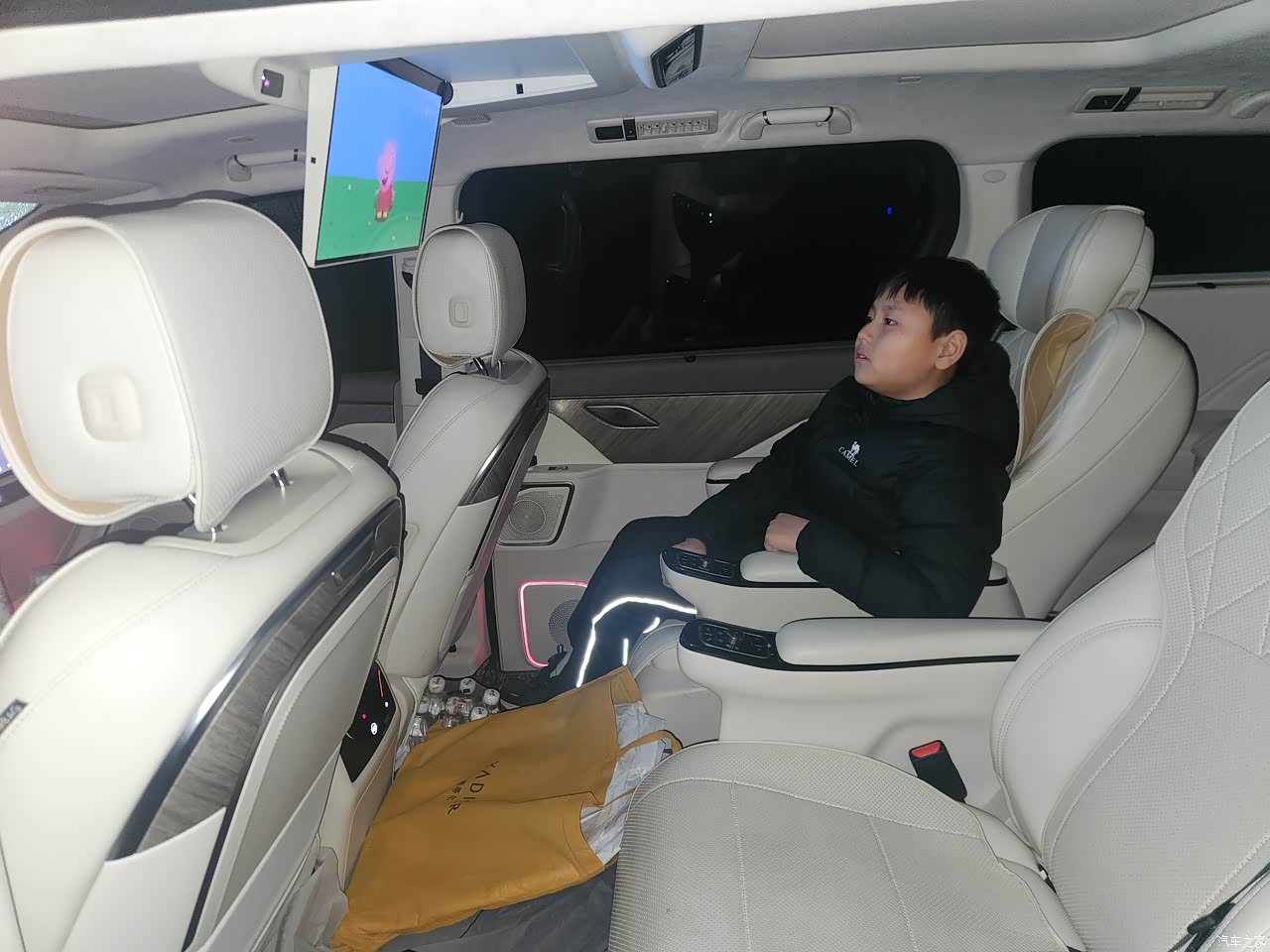 整车就像个头等舱车厢,舒适,宽大!我家孩子想在车里,也不会碰到头!三排坐下后,我不会拥挤!