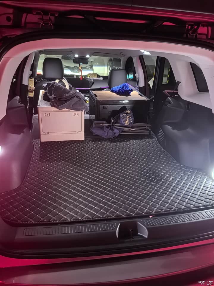 号称越级大5座,前排就不说了,电动调节加腰托,后排虽然不能调节,但腿部空间还是可以的,后备箱够大,后排能放倒纯平,空间就相当大了,两个成年人躺下也不拥挤。
