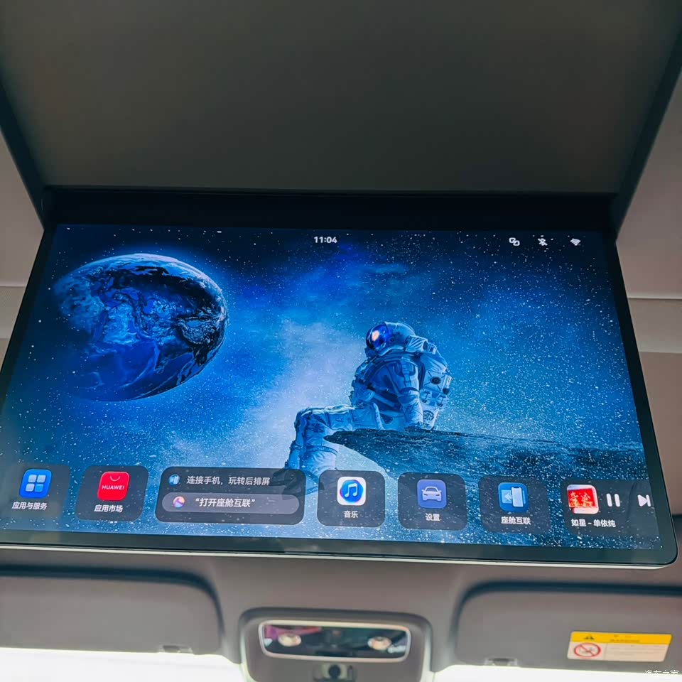 我加购了一个后排娱乐屏,这个真是车上小孩最爱的了,有次孩子在车上看动画片,我通过后视镜看到后面那辆车上的小孩,也趴在他家的前面玻璃处看我们车上的电视。还有副驾带的零重力座椅,小艺管他叫女王座椅,坐在副驾的人可以躺平了。