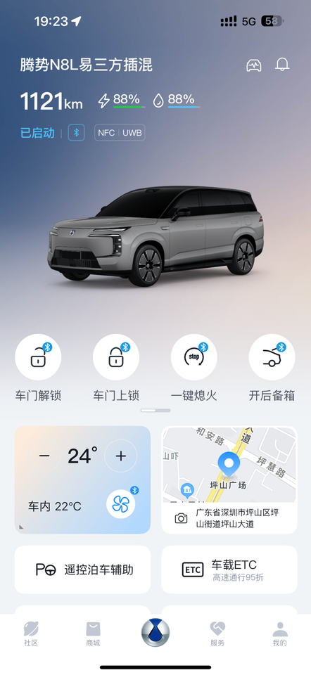 88%的电力,88%的油箱前提,表显1120,实际干个1000问题不大。冬季会稍微弱化一些,电池能力有一定馈电。反正调好了50%强制保电后,发动机除了输出动力的同时,又给电池补充电力,插混技术嘎嘎香。