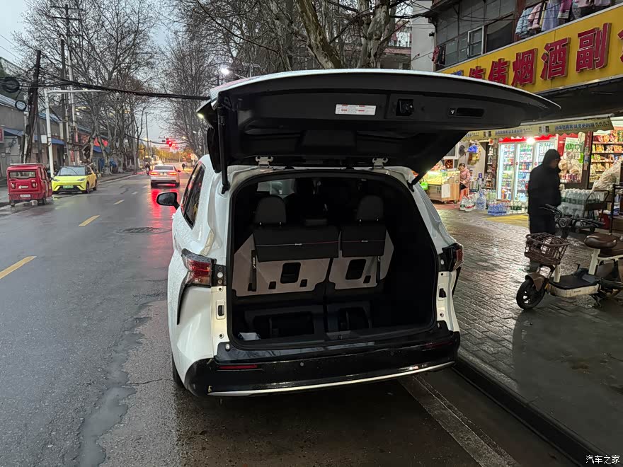 车内空间就是一个字大!尤其是后排的空间,之前我们全家出游,第三排可以同时坐3个人,也没有感觉到拥挤,如果将第三排放倒的情况下,简直就是一个微缩版的货拉拉,家里需要搬家,可以容纳一些大件的物品,MPV就是有这个优势,我们全家露营,带一些烧烤架子、小推车等等都是完全OK的。