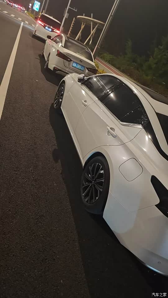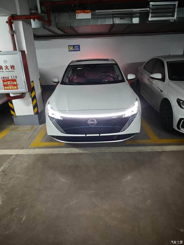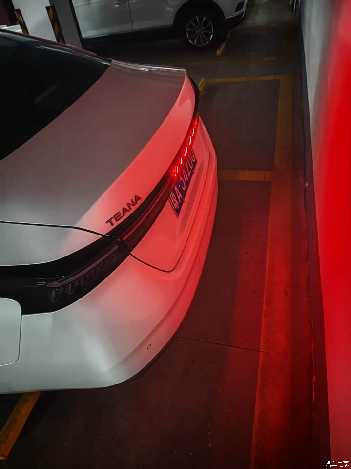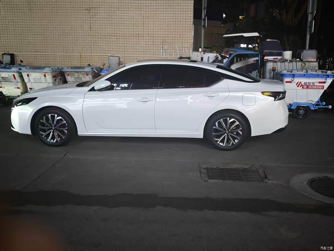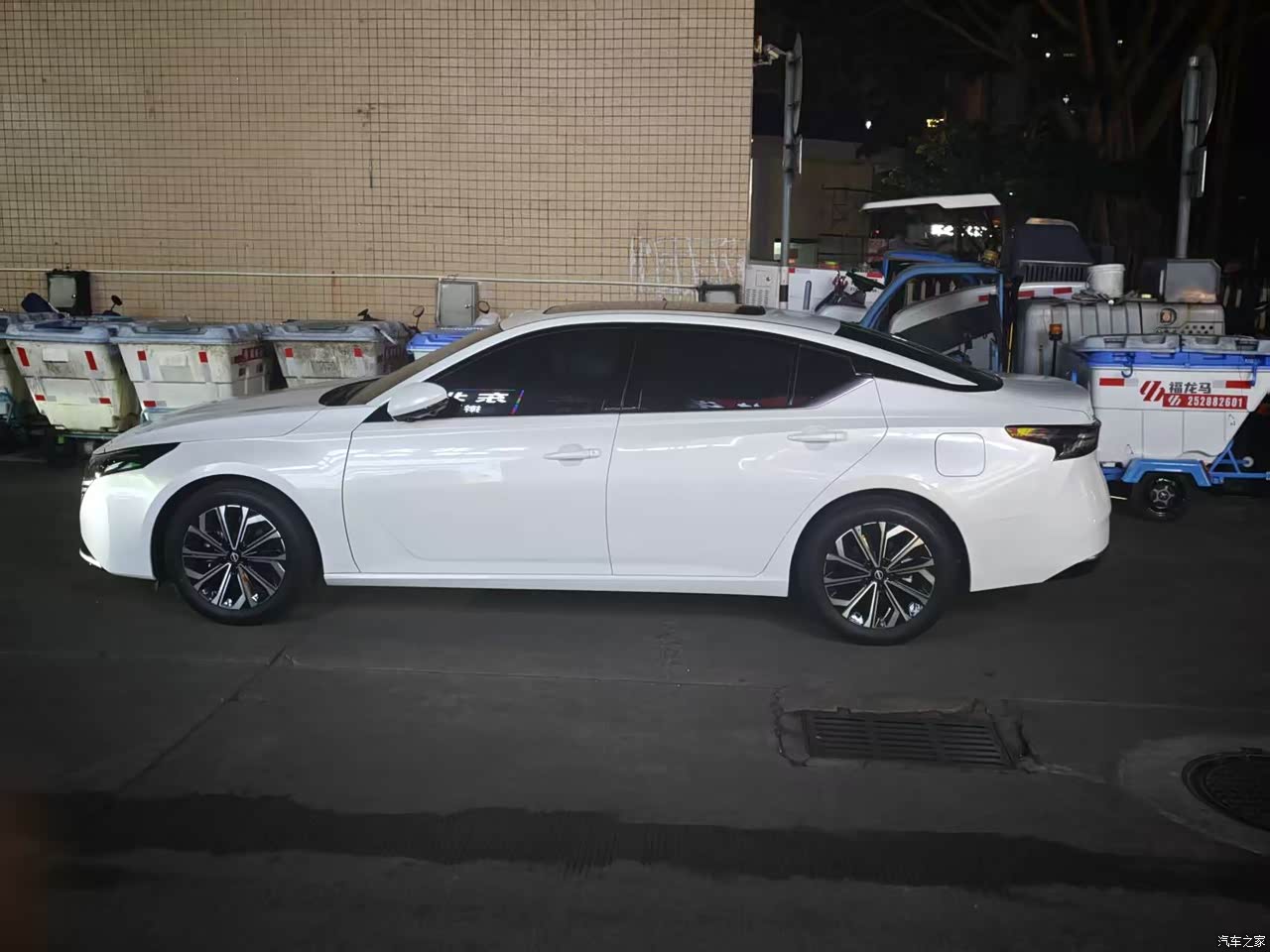 外观我选白色,耐脏,车身显得更大一圈,前脸是日产常见的V-Motion思路,格栅换了新样式,看着更年轻,车尾有一条贯穿的灯带,长度接近两米,晚上亮起来一条直线铺开,中间NISSAN字母也会发光,辨识度不难认,有次停在路边,后面路过的两个人小声说了一句“这新天籁尾灯挺亮眼”,心里听到这话也算有点成就感,整体属于耐看,不夸张,开出去日常通勤和接送家人都合适。