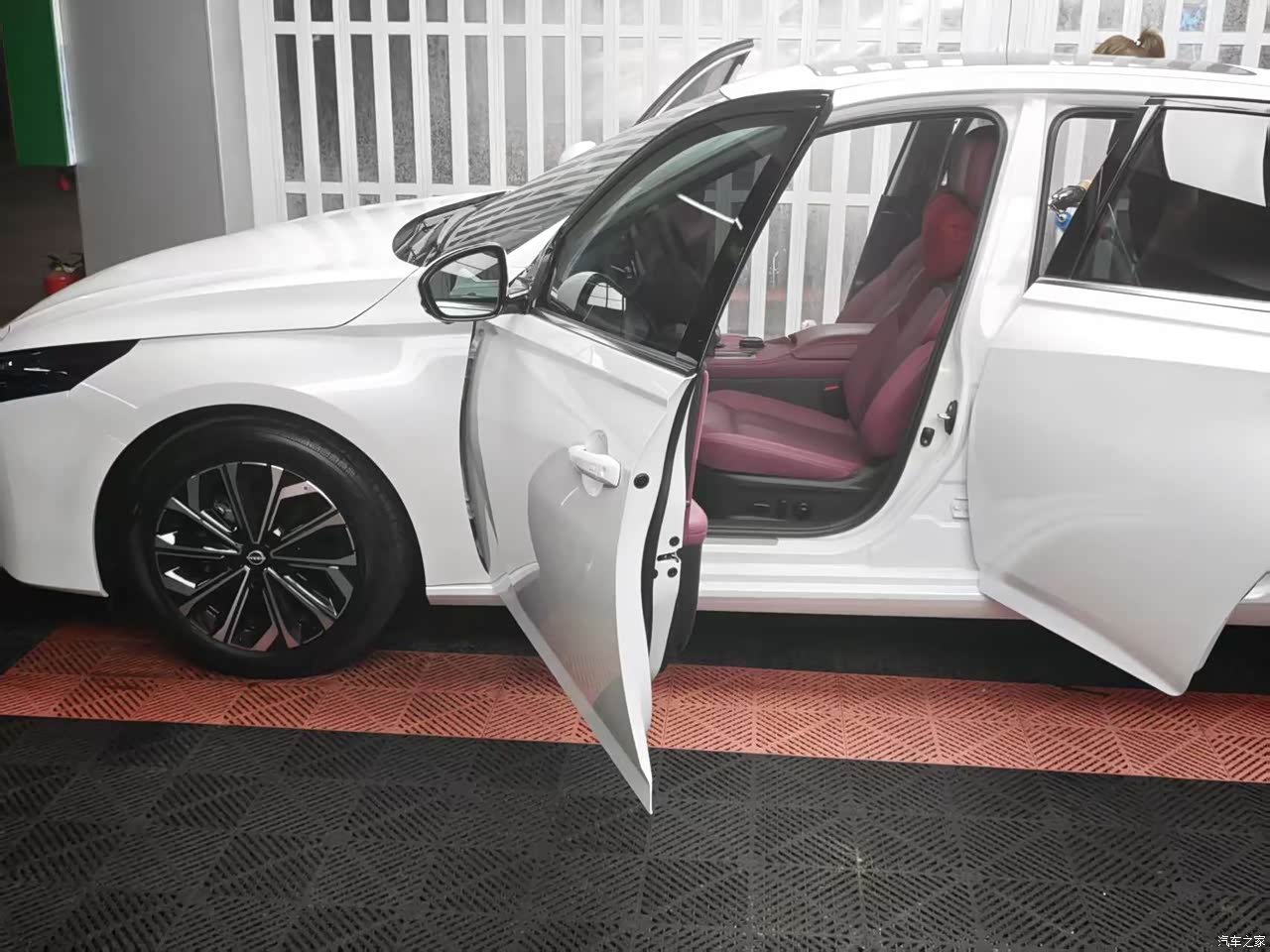 内饰我选黑红配,比纯黑更活一点,手能摸到的地方大多是软包,据说车内大概九成覆盖软质材料,座椅是日产常见的“大沙发”味道,坐下去有支撑,软里带点弹,不是那种陷进去起不来的感受,跑长途腰不容易累,主副驾都用电动调节,我这版本有通风加热和按摩,黑红搭配看着带点运动气质,也耐脏些,孩子上车吃东西偶尔掉一两点也不显,档把造型偏普通,跟整套偏科技的内饰放在一起,视觉上没那么抢眼。