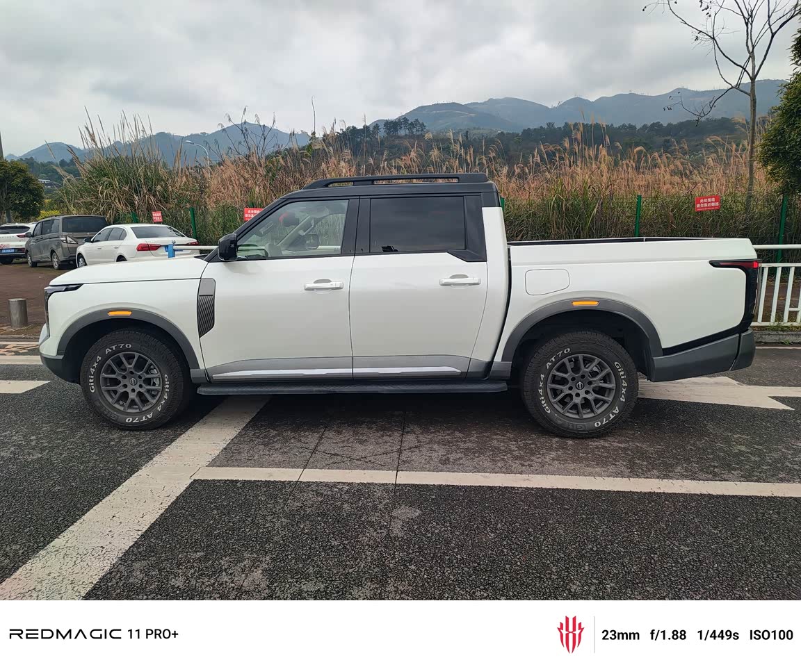 我买的是M9T-500柴油智尊版,选配行李架和17寸AT胎,虽然是皮卡虽然不带激光雷达,虽然车身还有5.5米,开启智驾一样给力,遇到货车并驾齐驱还会主动避让相邻距离,长途开500公里都不会犯困疲惫