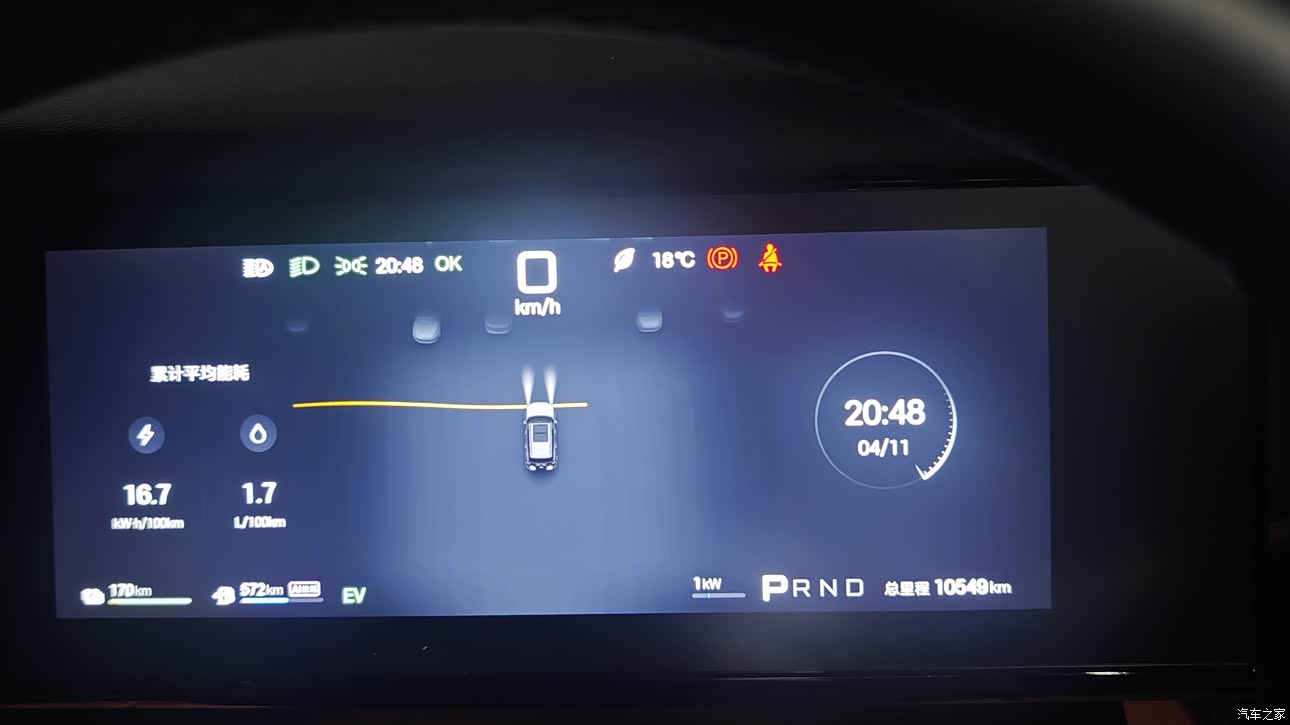目前平总能耗是(16.9kWh 1.7L)/100km,上次记录多了0.2kWh的能耗。