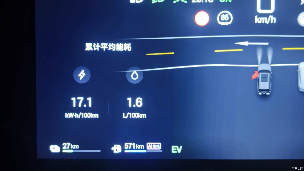 目前的平均总能耗(17.1kWh 1.6L)/100km。